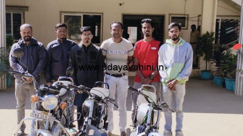 ಉದಯವಾಹಿನಿ, ಕೋಲಾರ: ಬೈಕ್ ವ್ಹೀಲಿಂಗ್ ಮಾಡ್ತಿದ್ದ ಐವರನ್ನು ಮಾಲೂರು ಪೊಲೀಸರು ಬಂಧಿಸಿದ್ದಾರೆ. ಬಂಧಿತರನ್ನು ಬೆಂಗಳೂರು ಮೂಲದ ಸೈಯದ್ ನಹೀಂ, ಮಹಮ್ಮದ್ ಇಂಜುಮಾನ್, ಇಕ್ಬಾಲ್ ಶೇಕ್ ವಿಕ್ರಂ ಹಾಗೂ ಮಹಮ್ಮದ್ ತೋಹಿದ್ ಎಂದು ಗುರುತಿಸಲಾಗಿದೆ. ಇವರೆಲ್ಲ ಮಾಲೂರು ತಾಲೂಕಿನ ಲಕ್ಕೂರು ಗ್ರಾಮದ ಬಳಿ ವ್ಹೀಲಿಂಗ್ ಮಾಡುತ್ತಿದ್ದರು. ಆರೋಪಿಗಳು ಬಳಸಿದ್ದ ಬೈಕ್ಗಳನ್ನು ವಶಕ್ಕೆ ಪಡೆಯಲಾಗಿದೆ. ಮಾಲೂರು ಪೊಲೀಸ್ ಠಾಣೆ ವ್ಯಾಪ್ತಿಯಲ್ಲಿ ಈ ಘಟನೆ ನಡೆದಿದೆ. ಆರೋಪಿಗಳನ್ನು ಪೊಲೀಸರು ಹೆಚ್ಚಿನ ವಿಚಾರಣೆ ನಡೆಸುತ್ತಿದ್ದಾರೆ.