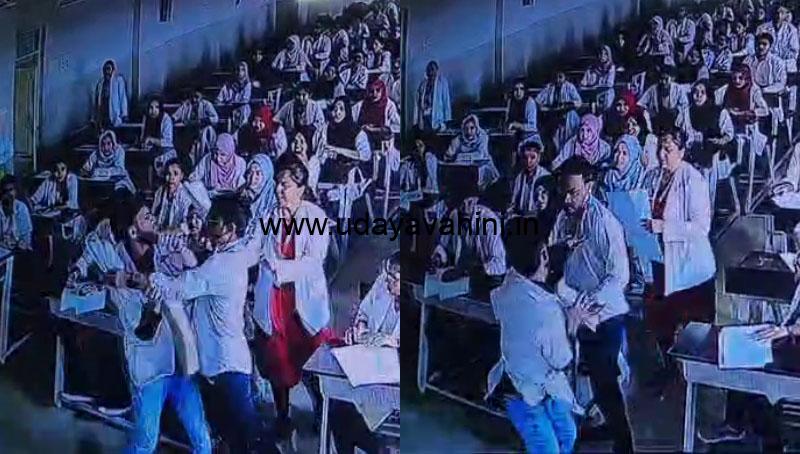 ಕಾಲೇಜಿನಲ್ಲಿ ಹೋಮಿಯೋಪಥಿಕ್ ಮಟೇರಿಯಾ ಮೆಡಿಕಾ ವಿಷಯದ ಇಂಟರ್ನಲ್ ಎಕ್ಸಾಮ್ ನಡೆಯುತ್ತಿತ್ತು. ಈ ವೇಳೆ ಶಹಬಾಜ್ ಮೊಬೈಲ್ ಬಳಸಿ ನಕಲು ಮಾಡಲು ಮುಂದಾಗಿದ್ದ. ಇದನ್ನು ನೋಡಿದ ಪ್ರಾಧ್ಯಾಪಕರು ಶಹಬಾಜ್ಗೆ ಪ್ರಶ್ನಿಸಿ ಉತ್ತರ ಪತ್ರಿಕೆ ಪಡೆದಿದ್ದರು. ಬಳಿಕ ಕ್ಲಾಸ್ ರೂಮ್ನಿಂದ ಆಚೆ ಹೋಗುವಂತೆ ಹೇಳಿದ್ದರು. ಇದಕ್ಕೆ ಕೆರಳಿ ಕೆಂಡವಾದ ಶಹಬಾಜ್ ಪ್ರಾಧ್ಯಾಪಕರ ಮೇಲೆ ಹಲ್ಲೆ ಮಾಡಿದ್ದ, ವಿದ್ಯಾರ್ಥಿಯ ನಡುವಳಿಕೆ ಬಗ್ಗೆ ಕಾಲೇಜಿನ ಆಡಳಿತ ಮಂಡಳಿ ಪಾಲಕರ ಗಮನಕ್ಕೆ ತಂದಿದೆ. ಜೊತೆಗೆ ಮುಂದಿನ ಪರೀಕ್ಷೆಗಳಿಗೆ ಅವಕಾಶ ನೀಡದಿರಲು ನಿರ್ಧಾರ ತೆಗೆದುಕೊಂಡಿದೆ. ಕಾಲೇಜ್ ಆಡಳಿತ ಮಂಡಳಿಯಿಂದಾದಲಿ ಅಥವಾ ಹಲ್ಲೆಗೆ ಒಳಗಾದ ಸಹಾಯಕ ಪ್ರಾಧ್ಯಾಪಕ ಶಿವರಾಜ್ ಕುಮಾರ್ನಿಂದ ಈವರೆಗೂ ಯಾವುದೇ ದೂರು ದಾಖಲಾಗಿಲ್ಲ.