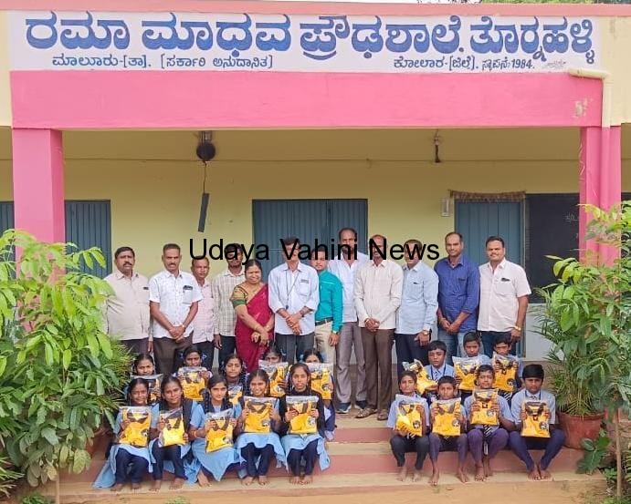 ಮಾಲೂರು ತಾಲ್ಲೂಕಿನ ಕಸಬಾ ಹೋಬಳಿಯ ತೊರ್ನಹಳ್ಳಿ ಗ್ರಾಮದ ರಮಾ ಮಾಧವ ಪ್ರೌಢ ಶಾಲೆಯ ವಿದ್ಯಾರ್ಥಿಗಳಿಗೆ ಹಮ್ಮಿಕೊಂಡಿದ್ದ ಉಚಿತ ಸಮವಸ್ತ್ರ ವಿತರಣಾ ಕಾರ್ಯಕ್ರಮದಲ್ಲಿ ಅವರು ಮಾತನಾಡಿದರು.ದಾನಿಗಳಾದ ಕೃಷ್ಣಪ್ಪ ಮತ್ತು ಮಕ್ಕಳು ಗುಂಡೂರು ಚೇತನ್ ಕುಮಾರ್, ಮಂಜುನಾಥ, ಮುರಳಿ, ಬಾಬು, ನಂಜೇಗೌಡ ಇವರು ವಿದ್ಯಾರ್ಥಿಗಳಿಗೆ ಉಚಿತವಾಗಿ ಸಮವಸ್ತ್ರ ನೀಡಿದರು. ನಿಮ್ಮ ಶಾಲೆಗೆ ಸದಾ ನಮ್ಮ ಬೆಂಬಲ ಇರುತ್ತದೆ. ಎಲ್ಲಾ ವಿದ್ಯಾರ್ಥಿಗಳು ಶ್ರದ್ಧಾ ಭಕ್ತಿಯಿಂದ ಪಾಠಗಳನ್ನು ಕೇಳಿ ಉತ್ತಮ ಪ್ರಜೆಗಳಾಗಬೇಕು ಎಂದು ಅವರು ಎಂದರು.ಈ ಸಂದರ್ಭದಲ್ಲಿ ದಾನಿಗಳನ್ನು ಶಾಲೆಯ ಮುಖ್ಯೋಪಾಧ್ಯಾಯರು, ಶಿಕ್ಷಕ ವೃಂದದವರು, ಸಿಬ್ಬಂದಿ ವರ್ಗದವರು ಸನ್ಮಾನಿಸಿದರು. ಈ ಕಾರ್ಯಕ್ರಮದಲ್ಲಿ ಶಾಲೆಯ ಮುಖ್ಯೋಪಾಧ್ಯಾಯರಾದ ಪಿ.ಜಿ.ವಿದ್ಯಾಧರಿ, ದೈಹಿಕ ಶಿಕ್ಷಣ ಶಿಕ್ಷಕರಾದ ಜಿ.ಸಿ.ವೆಂಕಟಸ್ವಾಮಿ, ಶಿಕ್ಷಕರಾದ ಕೃಷ್ಣಮೂರ್ತಿ, ತಿಮ್ಮರಾಯಪ್ಪ, ಸಾಗರ್.ಬಿ.ಎಲ್, ನಾಗರಾಜ್ ಮತ್ತು ಸಿಬ್ಬಂದಿ ರಾಜಶೇಖರ್ ಉಪಸ್ಥಿತರಿದ್ದರು.