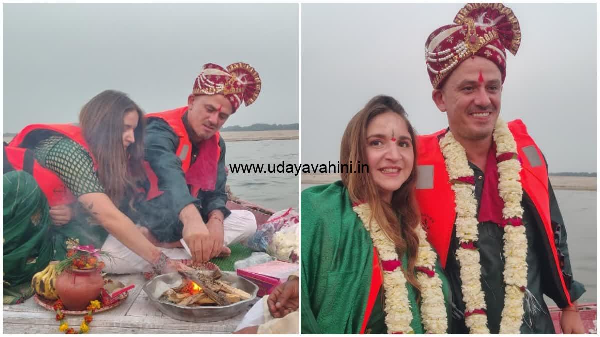 ವೇದ ಮಂತ್ರಗಳ ನಡುವೆ ವಿವಾಹ ಸಮಾರಂಭ: ಭಾರತೀಯ ಸಂಸ್ಕೃತಿ ಮತ್ತು ಸಂಪ್ರದಾಯಗಳಿಂದ ಆಕರ್ಷಿತರಾಗಿದ್ದ ಮೆಕ್ಸಿಕನ್ ನಿವಾಸಿಗಳಾದ ರುಯಿಜ್ ಕ್ಯಾಬ್ರೋಲ್ ಮತ್ತು ಗೊನ್ಜಾಲೊ ಮಿಗುಯೆಲ್, ಭಾರತದ ಆಧ್ಯಾತ್ಮಿಕ ರಾಜಧಾನಿ ವಾರಣಾಸಿಯಲ್ಲಿ ವಿವಾಹವಾಗಲು ನಿರ್ಧರಿಸಿದ್ದರು. ಅದರಂತೆ ಗಂಗಾ ನದಿಯಲ್ಲಿ ದೋಣಿಯ ಮೇಲೆ ವೇದ ಮಂತ್ರಗಳೊಂದಿಗೆ ಸಂಪ್ರದಾಯ ಬದ್ಧವಾಗಿ ಮದುವೆಯಾದರು.