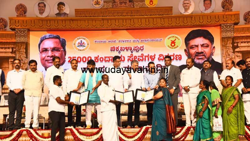 ಉದಯವಾಹಿನಿ, ಚಿಕ್ಕಬಳ್ಳಾಪುರ: ಕಂದಾಯ ಇಲಾಖೆ ಹಾಗೂ ಚಿಕ್ಕಬಳ್ಳಾಪುರ ಜಿಲ್ಲಾಡಳಿತ ವತಿಯಿಂದ ಚಿಕ್ಕಬಳ್ಳಾಪುರದಲ್ಲಿ ಬೃಹತ್ ಕಂದಾಯ ಸೇವೆಗಳ ಸಮರ್ಪಣಾ ವಿತರಣಾ ಸಮಾವೇಶ ಹಮ್ಮಿಕೊಳ್ಳಲಾಗಿತ್ತು. ಚಿಕ್ಕಬಳ್ಳಾಪುರ ನಗರದ ಚೊಕ್ಕಹಳ್ಳಿ ಬಳಿ ಬೃಹತ್ ಕಂದಾಯ ಇಲಾಖೆಯ ಸೇವೆಗಳ ಸವಲತ್ತುಗಳ ವಿತರಣಾ ಸಮಾವೇಶವನ್ನ ಕಂದಾಯ ಸಚಿವ ಕೃಷ್ಣಬೈರೇಗೌಡ ಹಾಗೂ ಸಚಿವ ಡಾ.ಎಂ.ಸಿ ಸುಧಾಕರ್ ಸೇರಿದಂತೆ ಶಾಸಕರಾದ ಪ್ರದೀಪ್ ಈಶ್ವರ್ ಹಾಗೂ ಪುಟ್ಟಸ್ವಾಮಿಗೌಡ ಚಾಲನೆ ನೀಡಿದರು.