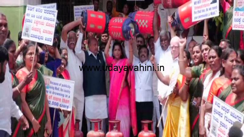 ಉದಯವಾಹಿನಿ, ಬೆಂಗಳೂರು: ಸಿಲಿಂಡರ್ ದರ ಹೆಚ್ಚಳಕ್ಕೆ ಕಾಂಗ್ರೆಸ್ ಆಕ್ರೋಶ ವ್ಯಕ್ತಪಡಿಸಿದ್ದು, ಕೆಪಿಸಿಸಿ ಕಚೇರಿ ಮುಂದೆ ಕೇಂದ್ರ ಸರ್ಕಾರದ ವಿರುದ್ಧ ಪ್ರತಿಭಟನೆ ನಡೆಸಿತು. ಕೆಪಿಸಿಸಿ ಕಾರ್ಯಾಧ್ಯಕ್ಷ ಜಿ.ಸಿ.ಚಂದ್ರಶೇಖರ್, ಗ್ಯಾರಂಟಿ ಅನುಷ್ಠಾನ ಸಮಿತಿ ಅಧ್ಯಕ್ಷ ಹೆಚ್.ಎಂ.ರೇವಣ್ಣ ನೇತೃತ್ವದಲ್ಲಿ ಪ್ರತಿಭಟನೆ ನಡೆಸಿದ ಕಾಂಗ್ರೆಸ್ ಕಾರ್ಯಕರ್ತರು, ಖಾಲಿ ಗ್ಯಾಸ್ ಸಿಲಿಂಡರ್ ಹೊತ್ತುಕೊಂಡು ಆಕ್ರೋಶ ವ್ಯಕ್ತಪಡಿಸಿದರು. ವಿಶ್ವಗುರು ಮೋದಿ ದೇಶ ಮಾರಾಟ ಮಾಡುತ್ತಾರೆ ಎಂದು ಭಿತ್ತಿಪತ್ರ ಹಿಡಿದು ಘೋಷಣೆ ಕೂಗಿದರು.