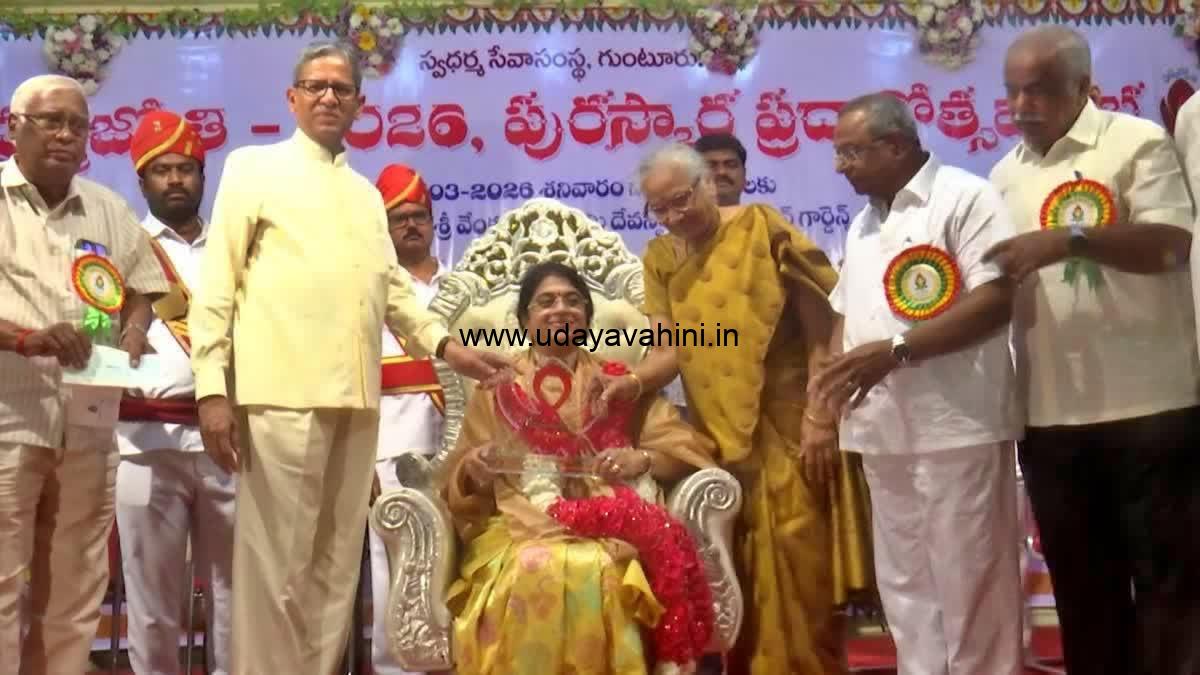 ಗುಂಟೂರಿನ ಬೃಂದಾವನ ಗಾರ್ಡನ್ಸ್ ವೆಂಕಟೇಶ್ವರ ಸ್ವಾಮಿ ದೇವಸ್ಥಾನದ ಆವರಣದಲ್ಲಿ ಶನಿವಾರ ನಡೆದ ಸಮಾರಂಭದಲ್ಲಿ ಮಾರ್ಗದರ್ಶಿ ಚಿಟ್ ಫಂಡ್ನ ವ್ಯವಸ್ಥಾಪಕ ನಿರ್ದೇಶಕಿ ಶೈಲಜಾ ಕಿರಣ್ ಅವರಿಗೆ ಸ್ವಧರ್ಮ ಸೇವಾ ಸಂಸ್ಥೆ ವತಿಯಿಂದ ಧರ್ಮಜ್ಯೋತಿ ಪುರಸ್ಕಾರ ನೀಡಿ ಗೌರವಿಸಲಾಯಿತು. ಸಮಾರಂಭದಲ್ಲಿ ಮುಖ್ಯ ಅತಿಥಿಯಾಗಿ ಭಾಗವಹಿಸಿದ್ದ ಸುಪ್ರೀಂ ಕೋರ್ಟ್ನ ಮಾಜಿ ಮುಖ್ಯ ನ್ಯಾಯಮೂರ್ತಿ ಎನ್. ವಿ. ರಮಣ ಅವರು ಪ್ರಶಸ್ತಿಯನ್ನು ಪ್ರದಾನ ಮಾಡಿದರು.
