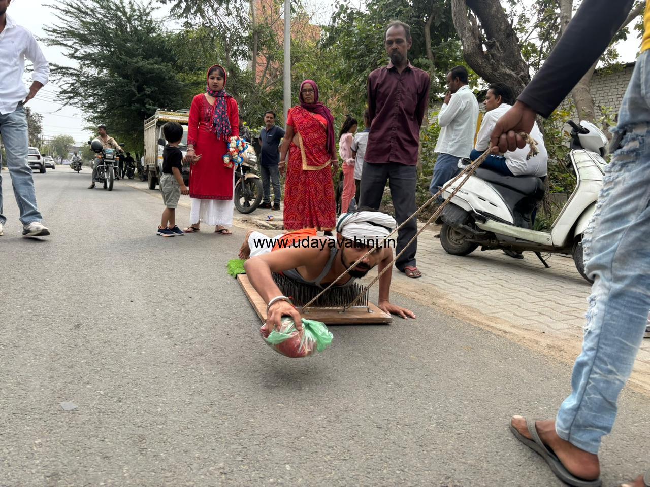 ಉದಯವಾಹಿನಿ, ಅಲ್ವಾರ್(ರಾಜಸ್ಥಾನ): ದೇವರ ಮೇಲಿನ ಭಕ್ತನ ನಂಬಿಕೆ ಉತ್ತುಂಗಕ್ಕೇರಿದಾಗ ಆತ ಅಸಾಧಾರಣ ಕೆಲಸಗಳನ್ನೂ ಮಾಡಲು ಹೆದರುವುದಿಲ್ಲ. ರಾಜಸ್ಥಾನದ ಅಲ್ವಾರ್ ನಗರದಲ್ಲಿ ಇದಕ್ಕೊಂದು ಸೂಕ್ತ ಉದಾಹರಣೆ ಸಿಕ್ಕಿದೆ. ಇಲ್ಲಿನ ನಿತೇಶ್ (27) ಎಂಬ ಯುವಕ ಒಂದು ಸಾವಿರ ಕಬ್ಬಿಣದ ಮೊಳೆಗಳಿಂದ ನಿರ್ಮಿಸಿರುವ ಮರದ ಹಲಗೆಯ ಮೇಲೆ ಮಲಗಿ ಖಾತು ಶ್ಯಾಮ್ ನಗರಿಯಲ್ಲಿರುವ ಭಗವಾನ್ ಖಾತು ಶ್ಯಾಮ್ಗೆ ದಂಡಾವತ್ ಯಾತ್ರೆಗೆ ಹೊರಟಿದ್ದಾರೆ. ನಿತೇಶ್ ಅವರ ಈ ಯಾತ್ರೆ ಸುಮಾರು ಒಂದೂವರೆ ತಿಂಗಳಲ್ಲಿ ಪೂರ್ಣಗೊಳ್ಳಲಿದೆ. ಈ ಪ್ರಯಾಣದ ವೇಳೆ ನಿತೇಶ್ ಅವರೊಂದಿಗೆ ಅವರ ಸ್ನೇಹಿತರ ಗುಂಪು ಇರುತ್ತದೆ. ಇವರು ಯಾತ್ರೆಗೆ ಮುಂದಿನ ವ್ಯವಸ್ಥೆ ಮತ್ತು ಅಗತ್ಯಗಳನ್ನು ಅವಲಂಬಿಸಿ ಜತೆಯಾಗುತ್ತಾರೆ.