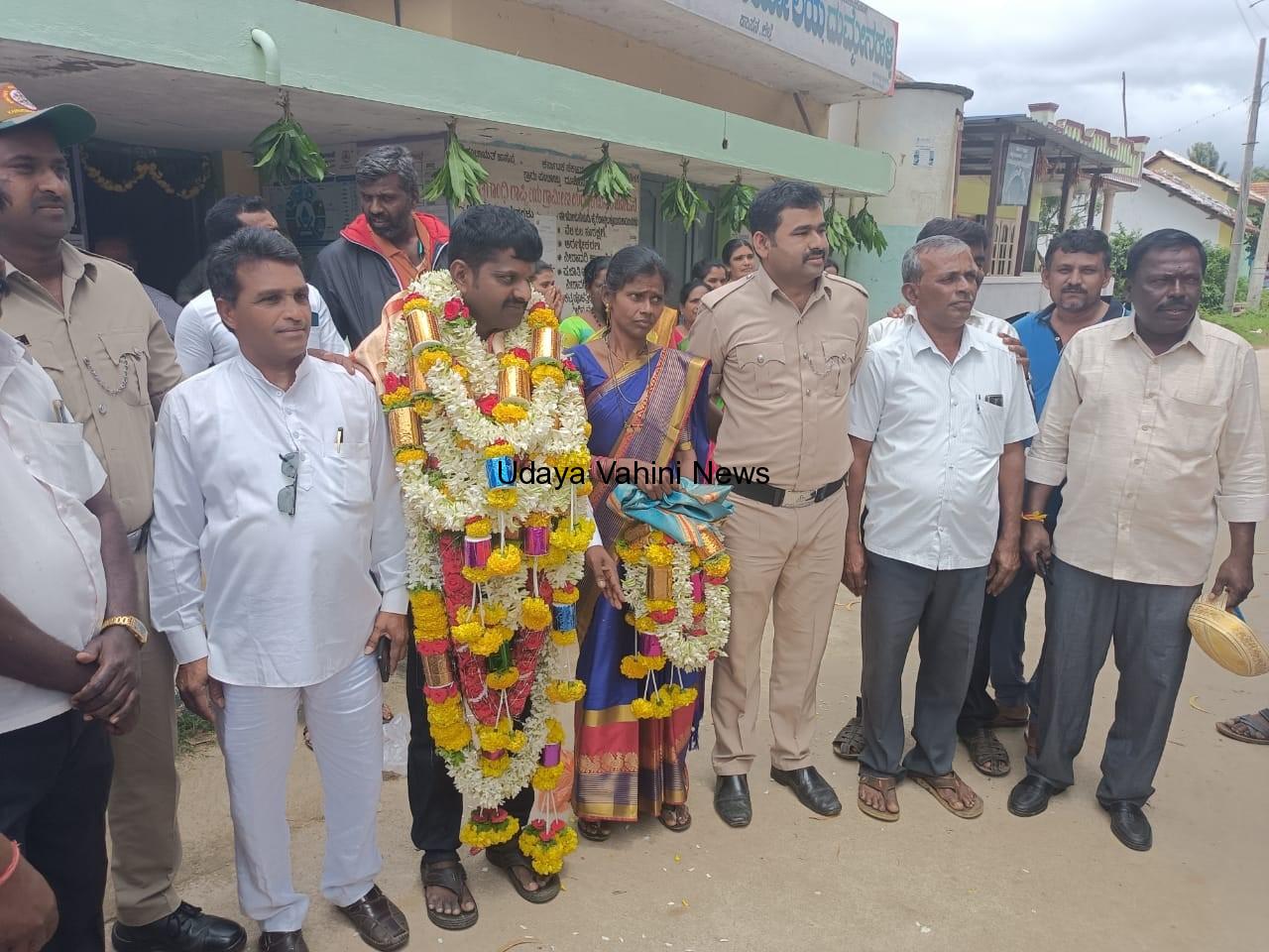 ಉದಯವಾಹಿನಿ ಅರಸೀಕೆರೆ : ವಿಧಾನಸಭಾ ಕ್ಷೇತ್ರದ ದುಮ್ಮೇನಹಳ್ಳಿ ಗ್ರಾಮ ಪಂಚಾಯತಿಯ ಎರಡನೇ ಅವಧಿಗೆ ಮೀಸಲಾಗಿದ್ದ ಹಿಂದುಳಿದ ವರ್ಗ ಎ ಅಧ್ಯಕ್ಷ ಸ್ಥಾನ ಹಾಗೂ ಪರಿಶಿಷ್ಟ ಪಂಗಡ ಮಹಿಳೆ ಉಪಾಧ್ಯಕ್ಷ ಸ್ಥಾನ ನಿಗದಿಯಾಗಿತ್ತು ಚುನಾವಣಾ ಪ್ರಕ್ರಿಯೆ ಪ್ರಾರಂಭಿಸಿದ ಸಮಾಜ ಕಲ್ಯಾಣ ಅಧಿಕಾರಿಗಳಾದ ಶ್ರೀಯುತ ಪರಶಿವಮೂರ್ತಿ ಚುನಾವಣಾ ಅಧಿಕಾರಿಯಾಗಿ ಚುನಾವಣಾ ಪ್ರಕ್ರಿಯೆ ಪ್ರಾರಂಭಿಸಿ ನಾಮಪತ್ರಕ್ಕೆ ಅವಕಾಶ ಕಲ್ಪಿಸಿ ಕೊಟ್ಟರು ಅಧ್ಯಕ್ಷ ಸ್ಥಾನಕ್ಕೆ ಅಜಯ್ ಅಮ್ಮನಟ್ಟಿ ಉಪಾಧ್ಯಕ್ಷ ಸ್ಥಾನಕ್ಕೆ ಲಲಿತಮ್ಮ ಆನೆನಳ್ಳಿ ನಾಮಪತ್ರ ಸಲ್ಲಿಸಿದರು ನಾಮಪತ್ರ ಸಲ್ಲಿಕೆ ಅವಧಿ ಮುಗಿಯುವವರೆಗೂ ಯಾವುದೇ ಬೇರೆ ನಾಮಪತ್ರ ಸಲ್ಲಿಕೆ ಆಗದ ಕಾರಣ ಚುನಾವಣಾ ಅಧಿಕಾರಿಗಳು ದುಮ್ಮನಹಳ್ಳಿ ಗ್ರಾಮ ಪಂಚಾಯತಿ ಅಧ್ಯಕ್ಷರಾಗಿ ಅಜಯ್ ಅಮನಟ್ಟಿ ಹಾಗೂ ಉಪಾಧ್ಯಕ್ಷರಾಗಿ ಲಲಿತಮ್ಮ ಆನೆನಳ್ಳಿ ರವರನ್ನ ಅವಿರೋಧ ಆಯ್ಕೆ ಎಂದು ಘೋಷಿಸಿದರು.