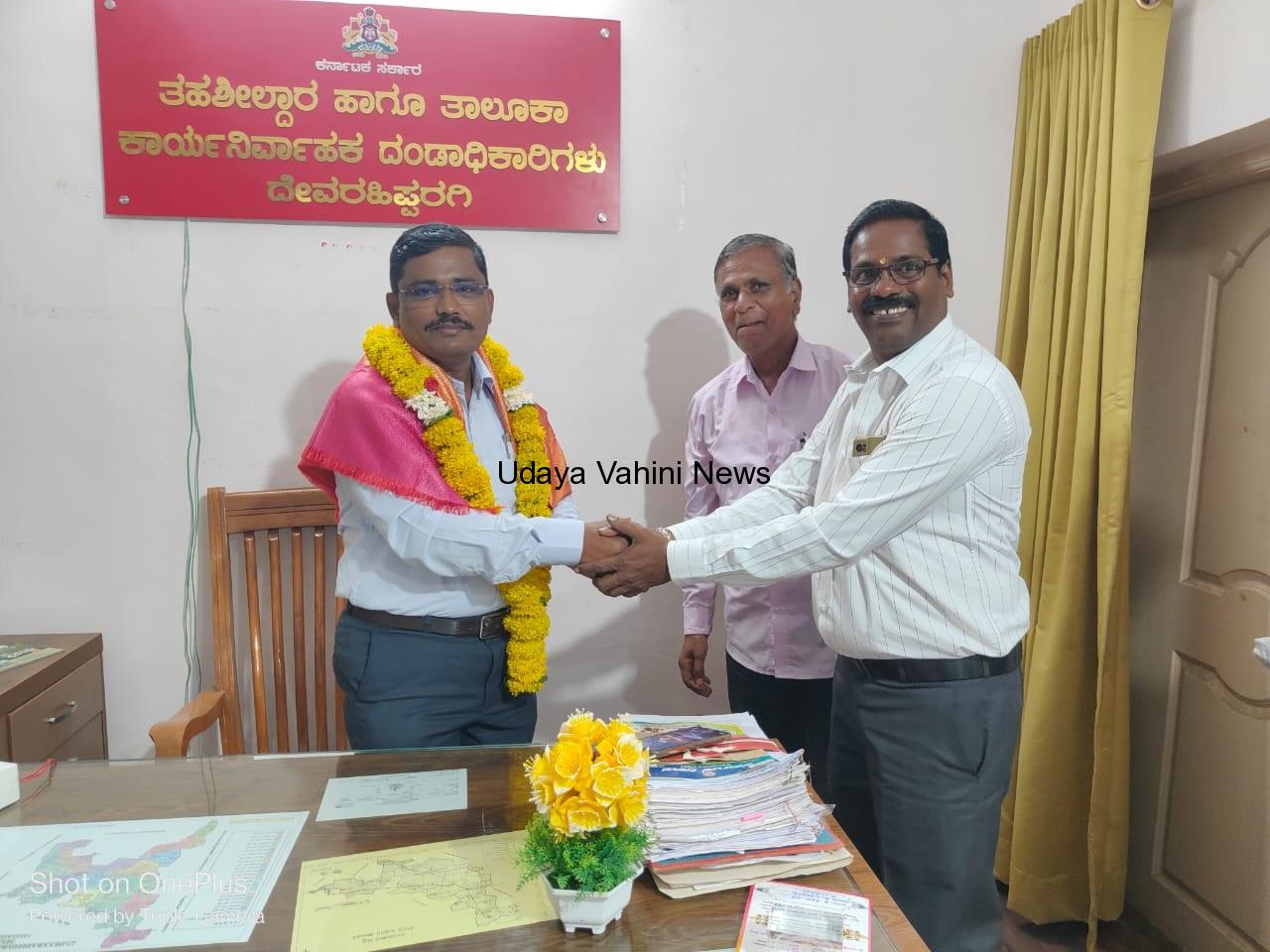 ಉದಯವಾಹಿನಿ ದೇವರಹಿಪ್ಪರಗಿ:ತಾಲ್ಲೂಕಿನ ನೂತನ ತಹಶೀಲ್ದಾರ್ ಆಗಿ ಪ್ರಕಾಶ ಬಸವಂತಪ್ಪ ಸಿಂದಗಿ ಅವರು ಸೋಮವಾರದಂದು ಅಧಿಕಾರ ವಹಿಸಿಕೊಂಡರು.