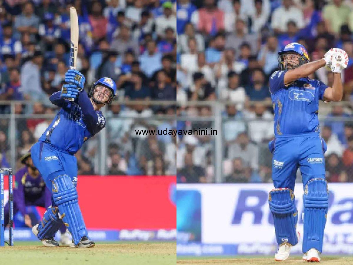 ಉದಯವಾಹಿನಿ, 13 ವರ್ಷಗಳ ಸೋಲಿನ ಓಟಕ್ಕೆ ಬ್ರೇಕ್ ಹಾಕಿದ ಮುಂಬೈ ಇಂಡಿಯನ್ಸ್ ಕೊನೆಗೂ ಐಪಿಎಲ್ನ ಮೊದಲ ಪಂದ್ಯವನ್ನು ಭರ್ಜರಿಯಾಗಿ ಗೆದ್ದುಕೊಂಡಿದೆ. ಆರಂಭಿಕ ಆಟಗಾರರಾದ ರೋಹಿತ್ ಶರ್ಮಾ ಮತ್ತು ರಿಯನ್ ರಿಕಲ್ಟನ್ ಅವರ ಸ್ಫೋಟಕ ಅರ್ಧಶತಕದ ಆಟದ ನೆರವಿನಿಂದ ಕೋಲ್ಕತ್ತಾ ವಿರುದ್ಧ 6 ವಿಕೆಟ್ಗಳ ಜಯ ಸಾಧಿಸಿದೆ. ವಾಖೆಂಡ್ ಮೈದಾನದಲ್ಲಿ ಟಾಸ್ ಸೋತು ಮೊದಲು ಬ್ಯಾಟ್ ಬೀಸಿದ ಕೋಲ್ಕತ್ತಾ ನೈಟ್ರೈಡರ್ಸ್ 4 ವಿಕೆಟ್ ನಷ್ಟಕ್ಕೆ 220 ರನ್ಗಳಿಸಿತು. ಕಠಿಣ ಸವಾಲನ್ನು ಬೆನ್ನಟ್ಟಿದ ಮುಂಬೈ ಇನ್ನೂ 5 ಎಸೆತ ಬಾಕಿ ಇರುವಂತೆಯೇ 4 ವಿಕೆಟ್ ನಷ್ಟಕ್ಕೆ 224 ರನ್ ಹೊಡೆದು ಶುಭಾರಂಭ ಮಾಡಿತು. 6 ಓವರಿನ ಪವರ್ ಪ್ಲೇನಲ್ಲೇ 80 ರನ್ ಹೊಡೆದ ರೋಹಿತ್ ಶರ್ಮಾ ಮತ್ತು ರಿಕಲ್ಟನ್ 72 ಎಸೆತಗಳಲ್ಲಿ ಮೊದಲ ವಿಕೆಟಿಗೆ 148 ರನ್ ಜೊತೆಯಾಟವಾಡುವ ಮೂಲಕ ಭದ್ರ ಬುನಾದಿ ಹಾಕಿದರು. 78 ರನ್(38 ಎಸೆತ, 6 ಬೌಂಡರಿ, 6 ಸಿಕ್ಸ್) ಗಳಿಸಿದ್ದ ರೋಹಿತ್ ಶರ್ಮಾ ಕ್ಯಾಚ್ ನೀಡಿ ಔಟಾದರು.