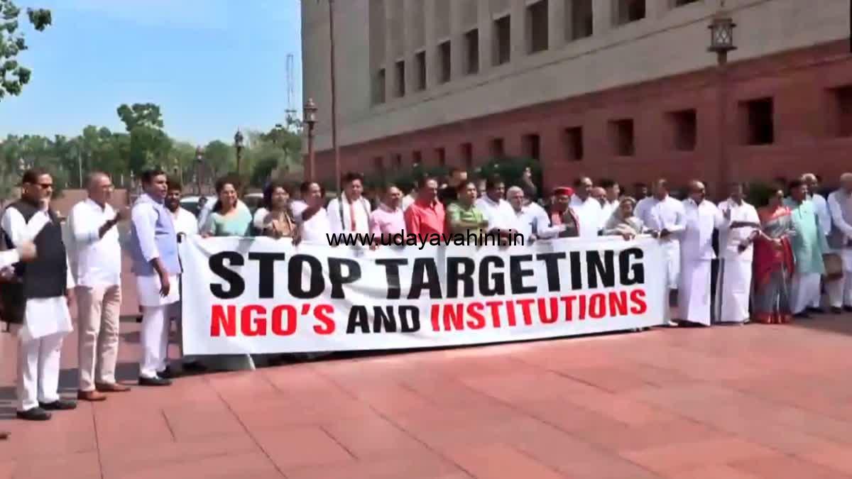 ಉದಯವಾಹಿನಿ, ವಿದೇಶಿ ದೇಣಿಗೆ ನಿಯಂತ್ರಣ ಕಾಯ್ದೆ ತಿದ್ದುಪಡಿ ಮಸೂದೆಗೆ ವಿಪಕ್ಷಗಳು ಆಕ್ಷೇಪ ವ್ಯಕ್ತಪಡಿಸಿ ಸಂಸತ್ ಭವನದ ಮುಂದೆ ಇಂದು ಪ್ರತಿಭಟನೆ ನಡೆಸಿದವು. ತರಾತುರಿಯಲ್ಲಿ ಜಾರಿಗೆ ತರಲು ಯತ್ನಿಸುತ್ತಿರುವ ಪ್ರಸ್ತಾವಿತ ವಿಧೇಯಕವನ್ನು ಕೇಂದ್ರ ಸರ್ಕಾರ ಹಿಂಪಡೆಯಬೇಕು ಎಂದು ಒತ್ತಾಯಿಸಿದವು.ಎನ್ಜಿಒಗಳು ಮತ್ತು ಇತರೆ ಸಂಸ್ಥೆಗಳನ್ನು ಗುರಿಯಾಗಿಸುವುದನ್ನು ನಿಲ್ಲಿಸಿ’ ಎಂದು ಬರೆದ ಬ್ಯಾನರ್ಗಳನ್ನು ಪ್ರದರ್ಶಿಸಿದ ವಿಪಕ್ಷ ಸಂಸದರು, ಸರ್ಕಾರದ ವಿರುದ್ಧ ಘೋಷಣೆಗಳನ್ನು ಕೂಗಿದರು.