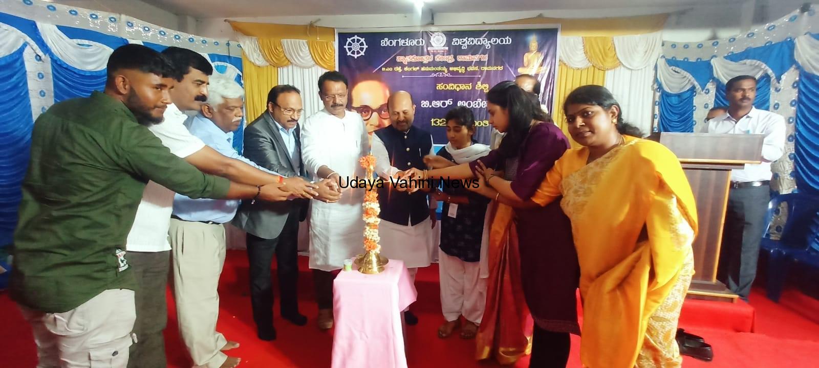 ಉದಯವಾಹಿನಿ ರಾಮನಗರ: ಬೆಂಗಳೂರು ವಿಶ್ವವಿದ್ಯಾಲಯ ಸ್ನಾತಕೋತ್ತರ ಕೇಂದ್ರ ರಾಮನಗರದಲ್ಲಿ ಮಂಗಳವಾರ ಸಂವಿಧಾನ ಶಿಲ್ಪಿ ಡಾ.ಬಿ.ಆರ್.ಅಂಬೇಡ್ಕರ್ ಅವರ 132ನೇ ಜಯಂತಿ ನಡೆಯಿತು.ಕಾರ್ಯಕ್ರಮದ ಉದ್ಘಾಟನೆಯನ್ನು ರಾಮನಗರ ಕ್ಷೇತ್ರದ ಶಾಸಕ ಎಚ್. ಎ.ಇಕ್ಬಾಲ್ ಹುಸೇನ್ ನೆರವೇರಿಸಿ ಮಾತನಾಡಿದರು.