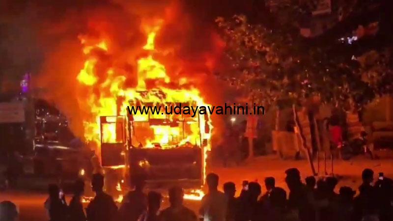ಉದಯವಾಹಿನಿ, ಹೈದರಾಬಾದ್: ಚಲಿಸುತ್ತಿದ್ದ ಖಾಸಗಿ ಬಸ್ನಲ್ಲಿ ಏಕಾಏಕಿ ಬೆಂಕಿ ಕಾಣಿಕೊಂಡು ಸಂಪೂರ್ಣವಾಗಿ ಸುಟ್ಟು ಕರಕಲಾಗಿರುವ ಘಟನೆ ಹೈದರಾಬಾದ್ನ ಕೆಪಿಎಚ್ಬಿಯಲ್ಲಿ ನಡೆದಿದೆ. ಸಿಬ್ಬಂದಿಯ ಜಾಗರೂಕತೆಯಿಂದ ಬಸ್ನಲ್ಲಿ ಪ್ರಯಾಣಿಸುತ್ತಿದ್ದ 18ಕ್ಕೂ ಹೆಚ್ಚು ಪ್ರಯಾಣಿಕರು ಪ್ರಾಣಾಪಾಯದಿಂದ ಪಾರಾಗಿದ್ದಾರೆ. ಖಾಸಗಿ ಬಸ್ ಹೊತ್ತಿಯುರಿಯುತ್ತಿರುವ ವಿಡಿಯೋ ಸಾಮಾಜಿಕ ಜಾಲತಾಣದಲ್ಲಿ ವೈರಲ್ ಆಗಿದೆ.