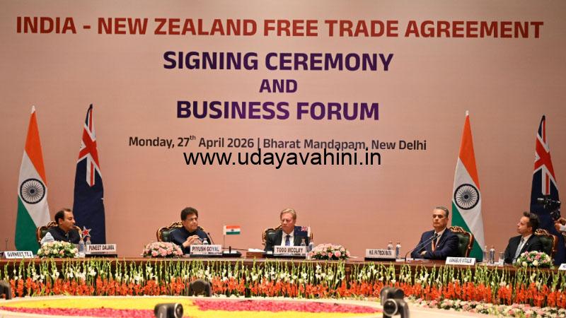 ಉದಯವಾಹಿನಿ, ನವದೆಹಲಿ: ಮಾತುಕತೆ ಆರಂಭವಾಗಿ 15 ವರ್ಷಗಳ ಬಳಿಕ ಭಾರತ ಮತ್ತು ನ್ಯೂಜಿಲೆಂಡ್ ನಡುವಿನ ಮುಕ್ತ ವ್ಯಾಪಾರ ಒಪ್ಪಂದಕ್ಕೆ ಇಂದು(ಏ.27) ದೆಹಲಿಯ ಭಾರತ್ ಮಂಟಪದಲ್ಲಿ ಅಧಿಕೃತವಾಗಿ ಸಹಿ ಹಾಕಲಾಗಿದೆ. ಕೇಂದ್ರ ವಾಣಿಜ್ಯ ಮತ್ತು ಕೈಗಾರಿಕಾ ಸಚಿವ ಪಿಯೂಷ್ ಗೋಯಲ್( ಮತ್ತು ನ್ಯೂಜಿಲೆಂಡ್ನ ವಾಣಿಜ್ಯ ಸಚಿವ ಟಾಡ್ ಮೆಕ್ಲೇ ಈ ಐತಿಹಾಸಿಕ ಒಪ್ಪಂದಕ್ಕೆ ಸಹಿ ಹಾಕಿದರು. ಈ ಒಪ್ಪಂದಿಂದ ಭಾರತದಿಂದ ನ್ಯೂಜಿಲೆಂಡ್ಗೆ ರಫ್ತಾಗುವ 100% ಸರಕುಗಳಿಗೆ (8,284 ಉತ್ಪನ್ನಗಳು) ಮೊದಲ ದಿನದಿಂದಲೇ ಶೂನ್ಯ ಸುಂಕದ (Duty-free) ಸೌಲಭ್ಯ ಸಿಗಲಿದೆ. ನ್ಯೂಜಿಲೆಂಡ್ನಿಂದ ಬರುವ ಸುಮಾರು 95% ರಷ್ಟು ಸರಕುಗಳ ಮೇಲಿನ ಸುಂಕವನ್ನು ಭಾರತವು ಹಂತಹಂತವಾಗಿ ಕಡಿಮೆ ಮಾಡಲಿದೆ ಅಥವಾ ರದ್ದುಗೊಳಿಸಲಿದೆ.