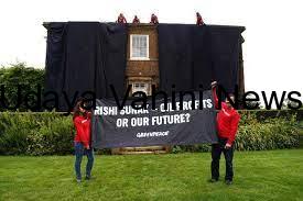 ನಾರ್ಥ್ ಯಾರ್ಕ್ಶೈರ್ನ ರಿಚ್ಮಂಡ್ ನಗರದಲ್ಲಿರುವ ಸುನಕ್ ಮನೆಯ ಛಾವಣಿಯನ್ನು ಏರಿದ ಪ್ರತಿಭಟನಾಕಾರರು ಮನೆಯ ಎದುರು ಭಾಗವನ್ನು ಕಪ್ಪುಬಟ್ಟೆಯಿಂದ ಮುಚ್ಚಿದ್ದಾರೆ. ಜತೆಗೆ ‘ರಿಷಿ ಸುನಕ್- ತೈಲದ ಲಾಭ ಮುಖ್ಯವೇ ಅಥವಾ ನಮ್ಮ ಭವಿಷ್ಯ ಮುಖ್ಯವೇ?’ ಎಂಬ ಬ್ಯಾನರ್ ಅನ್ನೂ ಮನೆಯ ಎದುರು ಹಾಕಲಾಗಿದೆ.‘ವಿಶ್ವದಾದ್ಯಂತ ಕಾಡ್ಗಿಚ್ಚು ಮತ್ತು ಪ್ರವಾಹಗಳು ಮನೆಗಳನ್ನು ಹಾಗೂ ಜನಜೀವನವನ್ನು ಸರ್ವನಾಶ ಮಾಡುತ್ತಿರುವಾಗ ಸುನಕ್ ತೈಲ ಮತ್ತು ಗ್ಯಾ