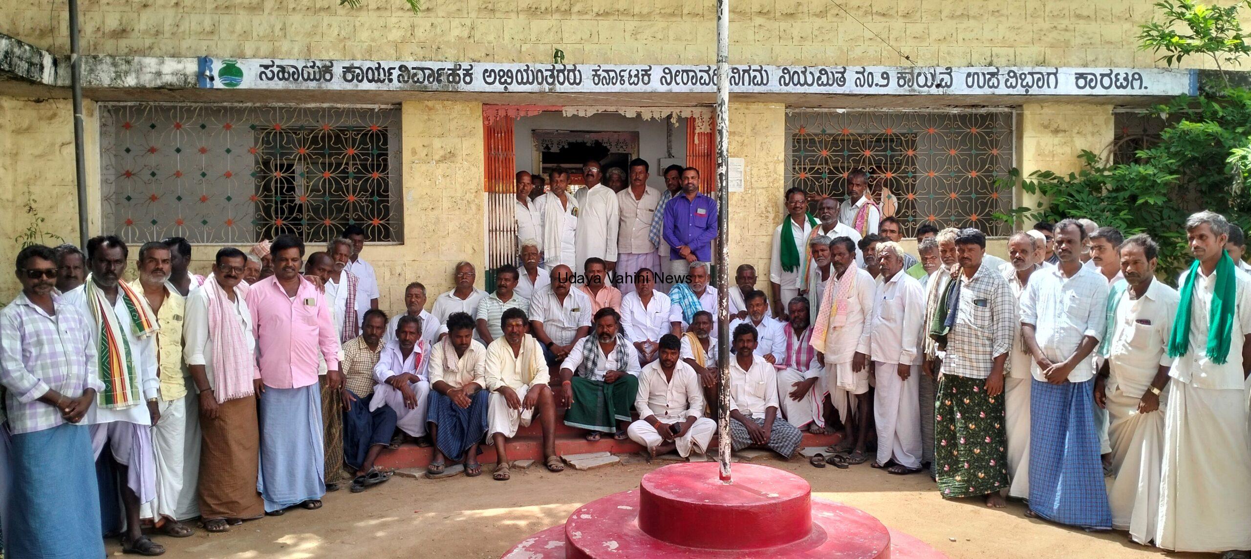 ಉದಯವಾಹಿನಿ,ಕಾರಟಗಿ: 32//3ಉಪ ಕಾಲುವೆಯ ಕೆಳಭಾಗಕ್ಕೆ ಅಸಮರ್ಪ ನೀರು ಪೂರೈಕೆ ಬೇಸತ್ತ ಕಾರಟಗಿ, ಚಂದನಹಳ್ಳಿ,ಕೊ0ತನೂರ ಗ್ರಾಮಗಳ ರೈತರು ಪಟ್ಟಣದ ಆರ್.ಜಿ. ರಸ್ತೆಯ ನಿರಾವರಿ ನಿಗಮದ ನಂ. ೨ ಕಾಲುವೆ ಉಪವಿಭಾಗ ಕಚೇರಿಗೆ ಮುತ್ತಿಗೆ ಹಾಕಿ ಪ್ರತಿಭಟನೆ ನಡೆಸಿದರು.