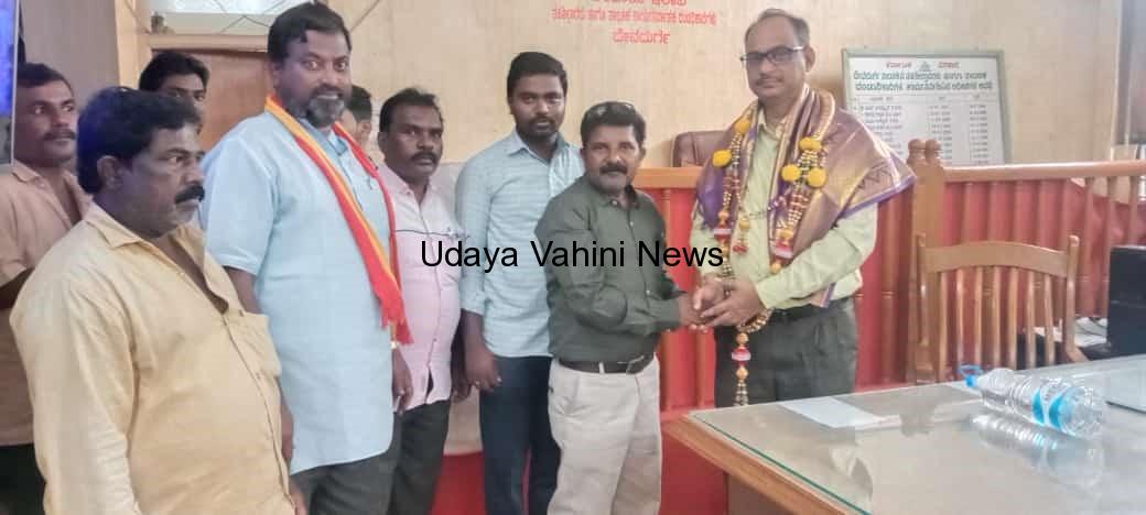 ಉದಯವಾಹಿನಿ ದೇವದುರ್ಗ : ತಾಲೂಕಿಗೆ ನೂತನ ತಹಸೀಲ್ದಾರ್ ಆಗಿ ಅಧಿಕಾರ ಸ್ವೀಕರಿಸಿದ ಶ್ರೀ ಚನ್ನಮಲ್ಲಪ್ಪ ಘಂಟಿ ಯವರಿಗೆ ಪುರಸಭೆ ಮುಖ್ಯಧಿಕಾರಿ ಕೆ. ಹಂಪಯ್ಯ ರವರಿಗೆ ಪುರಸಭೆ ಇಲಾಖೆಯ ವತಿಯಿಂದ ಆತ್ಮೀಯ ಸನ್ಮಾನ ಮಾಡಲಾಯಿತು