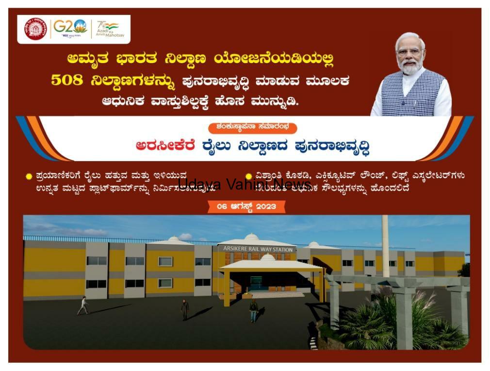 ಉದಯವಾಹಿನಿ, ಅರಸೀಕೆರೆ : ರೈಲ್ವೆ ನಿಲ್ದಾಣ ಅಮೃತ ಭಾರತ್ ನಿಲ್ದಾಣ ಯೋಜನೆ ಅಡಿ ಪುನರಾಭಿರುದ್ಧಿ ಯೋಜನೆಯಲ್ಲಿ 34 ಕೋಟಿ ಹಣ ಬಿಡುಗಡೆಯಾಗಿದ್ದು ಈ ಯೋಜನೆ ಅರಸೀಕೆರೆಯ ರೈಲ್ವೆ ನಿಲ್ದಾಣ ಸಂಪೂರ್ಣ ಮೇಲ್ದರ್ಜೆಗೆ ಯೆರಲಿದ್ದು ಇದರಿಂದ ಪ್ರಯಾಣಿಕರಿಗೆ ಸದುಪಯೋಗವಾಗಲಿದೆ ಈ ಯೋಜನೆಗೆ ಪ್ರಧಾನ ಮಂತ್ರಿ ನರೇಂದ್ರ ಮೋದಿಜಿ ಅವರಿಗೆ ಮಾಜಿ ಪ್ರಧಾನ ಮಂತ್ರಿಗಳಾದ ಎಚ್ ಡಿ ದೇವೇಗೌಡರು ಮತ್ತು ಹಾಸನ ಲೋಕಸಭಾ ಸದಸ್ಯರಾದ ಪ್ರಜ್ವಲ್ ರೇವಣ್ಣ ರವರು ಪತ್ರದ ಮುಖಾಂತರ ಹಲವು ಬಾರಿ ಮನವಿ ಮಾಡಿದ್ದರ ಫಲವಾಗಿ ಪ್ರಧಾನ ಮಂತ್ರಿಗಳು ಸ್ಪಂದಿಸಿ ಅರಸೀಕೆರೆ ರೈಲ್ವೆ ನಿಲ್ದಾಣವನ್ನು ಮೇಲ್ದರ್ಚಿಗೆರಿಸಿದ್ದಾರೆ ಇದರ ಉದ್ಘಾಟನೆಯನ್ನು ನಾಳೆ ಬೆಳಗ್ಗೆ ಪ್ರಧಾನ ಮಂತ್ರಿ ನರೇಂದ್ರ ಮೋದಿಜಿ ಅವರು