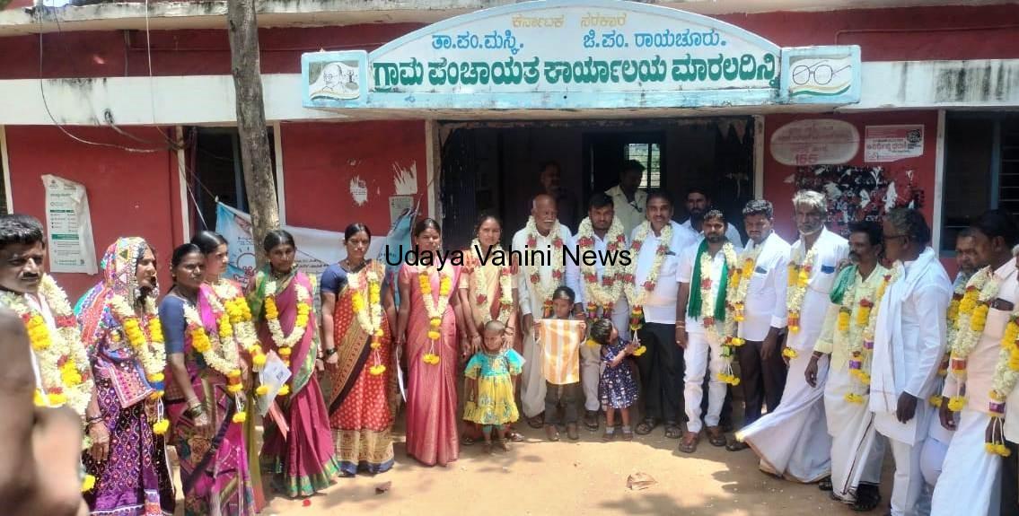 ಉದಯವಾಹಿನಿ, ಮಸ್ಕಿ: ತಾಲೂಕಿನ ಮಾರಲದಿನ್ನಿ ಗ್ರಾಪಂ ಎರಡನೇ ಅವಧಿಯ ಅಧ್ಯಕ್ಷ ಉಪಾಧ್ಯಕ್ಷರ ಚುನಾವಣೆ ಶನಿವಾರ ನಡೆಯಿತು. ಅಧ್ಯಕ್ಷರಾಗಿ ಬೀರಪ್ಪ ವೆಂಕಟಾಪೂರ ಹಾಗೂ ಉಪಾಧ್ಯಕ್ಷರಾಗಿ ಲಕ್ಷಿö್ಮÃ ಮೌನೇಶ ರಾಠೋಡ ಅವಿರೋಧವಾಗಿ ಆಯ್ಕೆಯಾದರು. ಈ ಹಿಂದೆ ಇದ್ದ ಮೀಸಲಾತಿ ಅವಧಿ ಮುಗಿದಿರುವ ಹಿನ್ನಲೆಯಲ್ಲಿ ತೆರವಾಗಿರುವ ಸ್ಥಾನಕ್ಕೆ ಚುನಾವಣೆ ನಡೆಯಿತು. ಒಟ್ಟು ೧೨ ಮಂದಿ ಸದಸ್ಯರಲ್ಲಿ ೧೧ ಸದಸ್ಯರು ಬಿಜೆಪಿ ಬೆಂಬಲಿತ ಸದಸ್ಯರು, ಒಬ್ಬರು ಕಾಂಗ್ರೆಸ್ ಬೆಂಬಲಿತ ಸದಸ್ಯರು, ಇದರಲ್ಲಿ ಕಾಂಗ್ರೆಸ್ ಬೆಂಬಲಿತ ಅಭ್ಯರ್ಥಿ ಮಾತ್ರ ಅಧ್ಯಕ್ಷ ಸ್ಥಾನಕ್ಕೆ ನಾಮಪತ್ರ ಸಲ್ಲಿಸಿದ್ದರು. ಉಪಾಧ್ಯಕ್ಷ ಸ್ಥಾನಕ್ಕೆ ಬಿಜೆಪಿ ಬೆಂಬಲಿತ ಸದಸ್ಯ ನಾಮಪತ್ರ ಸಲ್ಲಿಸಿದ್ದರು, ಇವರನ್ನು ಹೊರತು ಪಡಿಸಿ ಬೇರೆ ಯಾರು ನಾಮಪತ್ರ ಸಲ್ಲಿಸದ ಕಾರಣ ಅವರನ್ನು ಅವಿರೋಧವಾಗಿ ಆಯ್ಕೆ ಮಾಡಲಾಯಿತು ಎಂದು ಚುನಾವಣೆ ಅಧಿಕಾರಿ ಸಾಬಣ್ಣ ಅವರು ತಿಳಿಸಿದರು. ಬಳಿಕ ಗ್ರಾಪಂ ಸದಸ್ಯರು, ನೂತನ ಅಧ್ಯಕ್ಷ,ಉಪಾಧ್ಯಕ್ಷರಿಗೆ ಸನ್ಮಾನ ಮಾಡಿ ಅಭಿನಂದಿಸಲಾಯಿತು. ನಂತರ ನೂತನ ಅಧ್ಯಕ್ಷ ಬೀರಪ್ಪ ವೆಂಕಟಾಪೂರ ಅವರು ಮಾತನಾಡಿ, ಗ್ರಾಮದ ಅಭಿವೃದ್ದಿಗೆ ಮೂಲ ಸೌಕರ್ಯ ಒದಗಿಸಲು ಪ್ರಮಾಣಿಕ ಪ್ರಯತ್ನ ಮಾಡಲಾಗುವುದು ಎಂದು ಹೆಳಿದರು. ಈ ಸಂದರ್ಭದಲ್ಲಿ ಕಾಂಗ್ರೆಸ್ ಮುಖಂಡ ಹೆಚ್.ಬಿ ಮುರಾರಿ, ತಾಪಂ ಮಾಜಿ ಅಧ್ಯಕ್ಷ ಶಿವಣ್ಣ ನಾಯಕ, ಗ್ರಾಪಂ ಮಾಜಿ ಅಧ್ಯಕ್ಷ ಟಾಕಪ್ಪ, ರೆಡ್ಡೆಪ್ಪಗೌಡ, ಸಿದ್ದನಗೌಡ ನಾಗರಬೆಂಚಿ, ಚಂದ್ರಶೇಖರ, ಶಂಕರಗೌಡ ಮಾರಲದಿನ್ನಿ, ರಾಮು ಚವ್ಹಾಣ, ಮರಿಯಪ್ಪ ಮಾರಲದಿನ್ನಿ, ಪೋಮಾನಾಯಕ, ಗ್ರಾಪಂ ಸದಸ್ಯ ಹನುಮಂತ ಮಾರಲದಿನ್ನಿ, ಶರಣಬಸವ ಡಬ್ಬೇರಮಡು, ರಮೇಶ ಉಸ್ಕಿಹಾಳ, ಸಿದ್ದು ಮುರಾರಿ ಕೋಠಾರಿ, ಗೋವಿಂದ ವೆಂಕಟಾಪೂರ, ಹನುಮೇಶ ವೆಂಕಟಾಪೂರ ಸೇರಿದಂತೆ ಇನ್ನಿತರ ಗ್ರಾಪಂ ಸದಸ್ಯರು ಉಪಸ್ಥಿತಿರಿದ್ದರು.