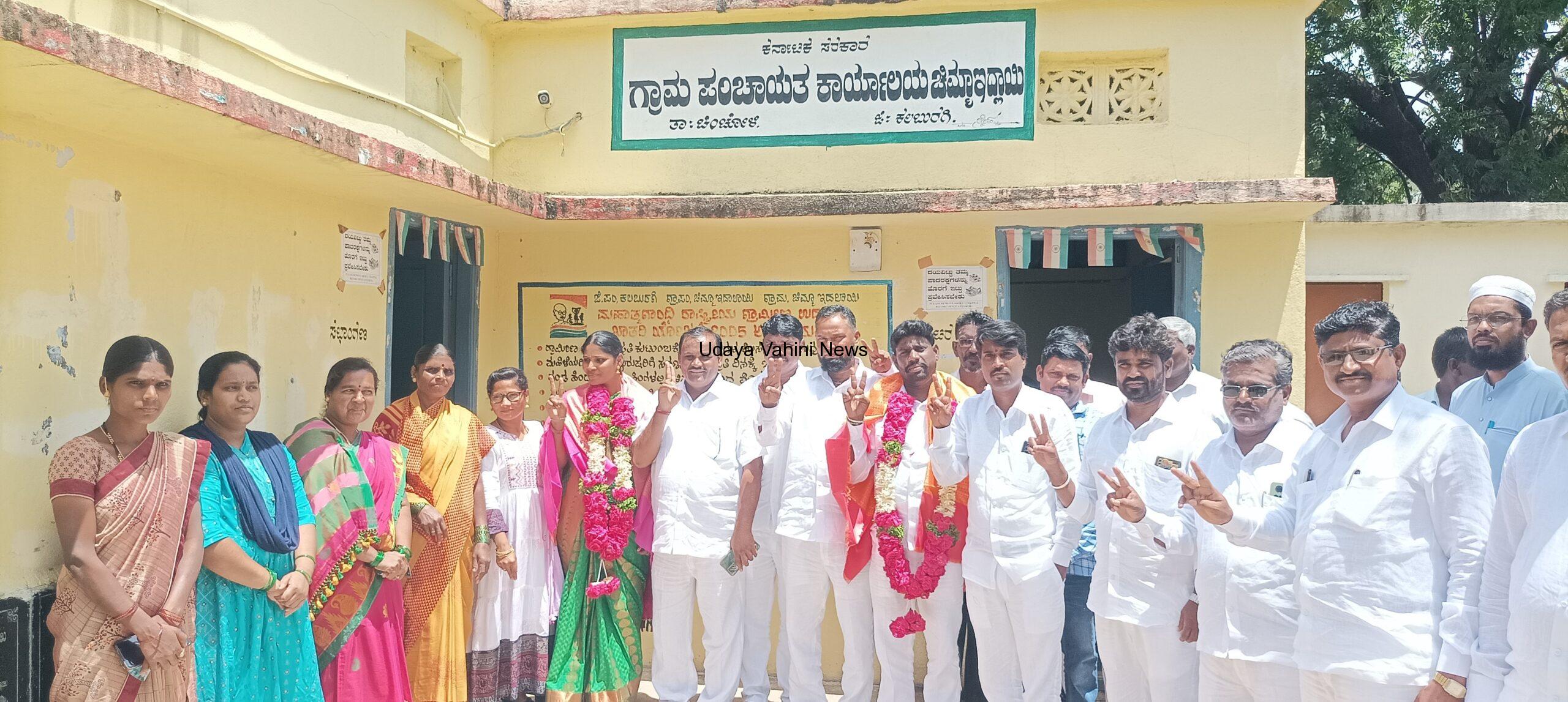 ಉದಯವಾಹಿನಿ,ಚಿಂಚೋಳಿ: ತಾಲ್ಲೂಕಿನ ಚಿಮ್ಮಾಇದಲಾಯಿ ಗ್ರಾಮ ಪಂಚಾಯತನ ಎರಡನೇ ಅವಧಿಗೆ ನಡೆದ ಅಧ್ಯಕ್ಷರ ಉಪಾಧ್ಯಕ್ಷರ ಚುನಾವಣೆಯಲ್ಲಿ ಅಧ್ಯಕ್ಷರಾಗಿ ಗೈಬಣ್ಣ ಹಣಮಂತ ದಸ್ತಾಪೂರ ಉಪಾಧ್ಯಕ್ಷೆರಾಗಿ ಜಗದೇವಿ ಮಲ್ಲಿಕಾರ್ಜುನ ಕೋಟಪಳ್ಳಿ ಅವರು ಅವಿರೋಧವಾಗಿ ಆಯ್ಕೆಯಾಗಿದ್ದಾರೆ ಎಂದು ಚುನಾವಣಾಧಿಕಾರಿ ಡಾ.ಧನರಾಜ ಭೋಮ್ಮಾ ತಿಳಿಸಿದ್ದಾರೆ.