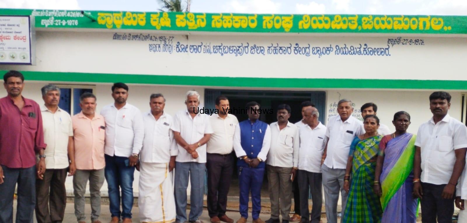 ಉದಯವಾಹಿನಿ,ಮಾಲೂರು: ತಾಲ್ಲೂಕಿನ ಜಯಮಂಗಲ ಪ್ರಾಥಮಿಕ ಕೃಷಿ ಪತ್ತಿನ ಸಹಕಾರ ಸಂಘದ ನೂತನ ಆಡಳಿತ ಮಂಡಳಿಗೆ 11 ಮಂದಿ ನಿರ್ದೇಶಕರು ಚುನಾವಣೆಯಲ್ಲಿ ಜಯಗಳಿಸಿದ್ದಾರೆ.