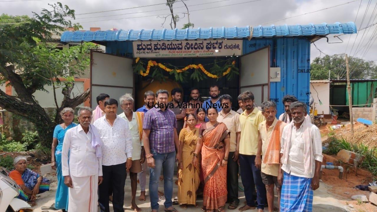ಉದಯವಾಹಿನಿ, ಚಿಂತಾಮಣಿ: ತಾಲೂಕಿನ ಕೈವಾರ ಹೋಬಳಿಯ ಮಸ್ತೇನಹಳ್ಳಿ ಗ್ರಾಮ ಪಂಚಾಯಿತಿ ವ್ಯಾಪ್ತಿಗೆ ಸೇರಿದ ಗುಟ್ಟಹಳ್ಳಿ ಗ್ರಾಮದಲ್ಲಿ 15ನೇ ಹಣಕಾಸು ಯೋಜನೆಯಯಡಿಯಲ್ಲಿ ಸರಿ ಸುಮಾರು 2.80 ಲಕ್ಷ ಅನುದಾನದಲ್ಲಿ ನಿರ್ಮಾಣವಾಗಿರು ಶುದ್ಧ ಕುಡಿಯುವ ನೀರಿನ ಘಟಕವನ್ನು ಗ್ರಾಮ ಪಂಚಾಯತಿ ಅಧ್ಯಕ್ಷೆ ಪಿ.ಉಮಾ ರಾಜಣ್ಣ ರವರು ಉದ್ಘಾಟಿಸಿ ಚಾಲನೆ ನೀಡಿದರು.ಈ ವೇಳೆ ಮಾತನಾಡಿದ ಗ್ರಾಮ ಪಂಚಾಯತಿ ಸದಸ್ಯರಾದ ಜಿ.ಎಸ್ ಮಂಜುನಾಥ್ ಹಾಗೂ ಮುಖಂಡರಾದ ಜೆಸಿಬಿ ಶಿವು ಹಳ್ಳಿಯ ಜನರಿಗೆ ಶುದ್ಧ ಕುಡಿಯುವ ನೀರು ನೀಡಲು
