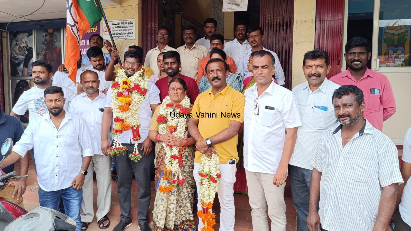 ಉದಯವಾಹಿನಿ ಕುಶಾಲನಗರ:-ಕುಶಾಲನಗರ ತಾಲೂಕಿನ ಕೂಡು ಮಂಗಳೂರು ಗ್ರಾಮ ಪಂಚಾಯಿತಿಯ ಆಡಳಿತ ಮಂಡಳಿಯ 2ನೇ ಅವಧಿಗೆ ನಡೆದ ಚುನಾವಣೆಯಲ್ಲಿ ಬಿಜೆಪಿ ಬೆಂಬಲಿತ ಅಭ್ಯರ್ಥಿಗಳಾದ ಭಾಸ್ಕರ ನಾಯಕ್ ಅಧ್ಯಕ್ಷರಾಗಿ ಹಾಗೂ ಶಶಿಕಲಾ ಉಪಾಧ್ಯಕ್ಷರಾಗಿ ಆಯ್ಕೆಯಾದರು ಪಂಚಾಯಿತಿ ಸಭಾಂಗಣದಲ್ಲಿ ನಡೆದ ಚುನಾವಣೆಯಲ್ಲಿ ಅಧ್ಯಕ್ಷ ಸ್ಥಾನಕ್ಕೆ ನಾಮಪತ್ರ ಸಲ್ಲಿಸಿದ ಚಂದ್ರಶೇಖರ್ ನಾಮಪತ್ರ ಹಿಂಪಡೆದಿದ್ದರಿಂದ ಇಬ್ಬರ ನಡುವೆ ನಡೆದ ಸ್ಪರ್ಧೆಯಲ್ಲಿ ಭಾಸ್ಕರ್ ನಾಯಕ್ 18 ಮತ ಶಂಸುದ್ದೀನ್ ಗೆ 6 ಮತಗಳು ಲಭಿಸಿದವು.