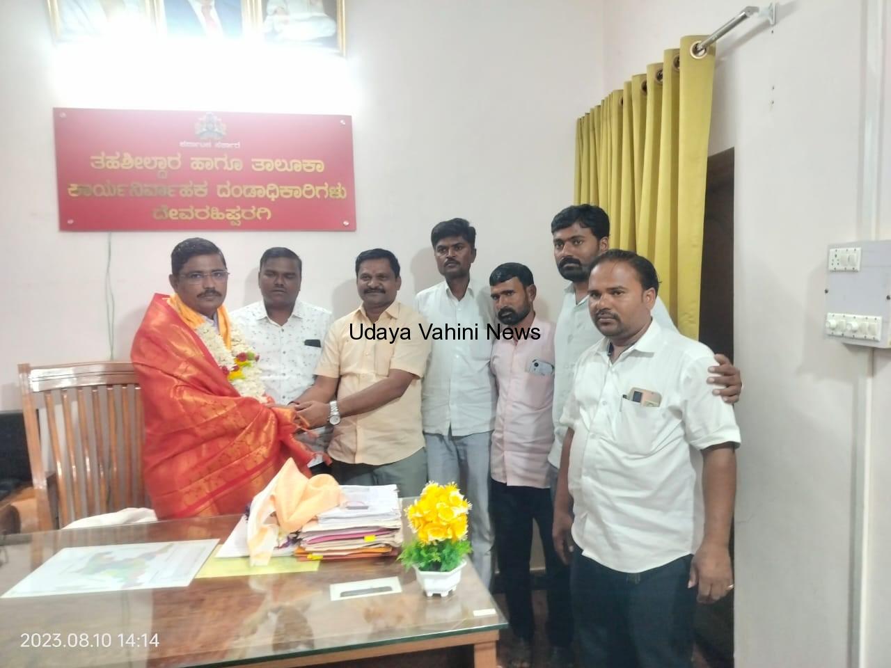 ಉದಯವಾಹಿನಿ ದೇವರಹಿಪ್ಪರಗಿ: ನೂತನ ತಹಶೀಲ್ದಾರ್ ಪ್ರಕಾಶ ಸಿಂದಗಿ ಅವರಿಗೆ ಬಿಜೆಪಿ ಮುಖಂಡರಿಂದ ಸನ್ಮಾನ. ಪಟ್ಟಣದ ತಾಲೂಕು ಕಚೇರಿ ಆವರಣದಲ್ಲಿ ಗುರುವಾರದಂದು ತಹಶೀಲ್ದಾರ್ ಅವರಿಗೆ ಬಿಜೆಪಿ ಮುಖಂಡರಿಂದ ಸನ್ಮಾನಿಸಿ ಗೌರವಿಸಲಾಯಿತು.ಇದೇ ಸಂದರ್ಭದಲ್ಲಿ ಬಿಜೆಪಿ ಜಿಲ್ಲಾ ರೈತ ಮೋರ್ಚಾ ಪ್ರಧಾನ ಕಾರ್ಯದರ್ಶಿಯಾದ ಸಿದ್ದು ಬುಳ್ಳಾ, ಬಿಜೆಪಿ ಜಿಲ್ಲಾ ಕಾರ್ಯದರ್ಶಿ ಹಾಗೂ ಪ ಪಂ ಸದಸ್ಯರಾದ ರಮೇಶ ಮಸಿಬಿನಾಳ,ಪ ಪಂ ಸದಸ್ಯರುಗಳಾದ ಮಂಗಳೆಶ ಕಡ್ಲೆವಾಡ, ವಿನೋದ ಚವ್ಹಾಣ, ಸೋಮು ದೇವೂರ, ಸಿಂದಗಿ ಎಪಿಎಂಸಿ ಮಾಜಿ ಉಪಾಧ್ಯಕ್ಷ ಪ್ರಕಾಶ ಪಡಶೆಟ್ಟಿ ಸೇರಿದಂತೆ ಹಲವಾರು ಮುಖಂಡರು ಉಪಸ್ಥಿತರಿದ್ದರು.