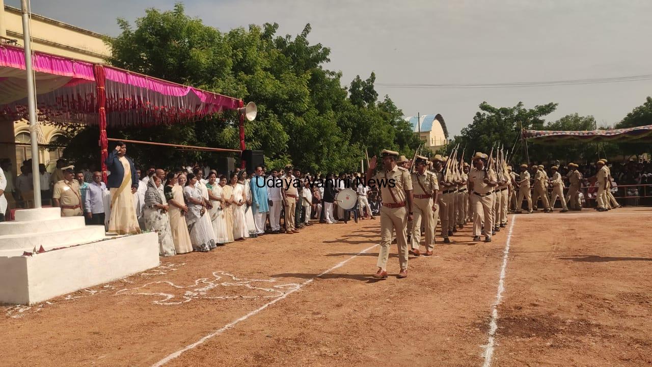 ಉದಯವಾಹಿನಿ, ಮುದ್ದೆಬಿಹಾಳ : 77ನೇ ಸ್ವಾತಂತ್ರ್ಯ ದಿನಾಚರಣೆ ಕಾರ್ಯಕ್ರಮದಲ್ಲಿ ಪಿಎಸೈ ಆರೀಪ್ ಮುಶಾಪೂರಿ ಧ್ವಜ ವಂದನೆ ಸಲ್ಲಿಸಿದರು.ಆರಕ್ಷಕರು, ಗೃಹ ರಕ್ಷಕ ದಳ, ಎನ್ ಎಸ್ ಎಸ್ , ಸ್ಕೌಟ್ಸ್ & ಗೈಡ್ಸ್ ಸೇರಿದಂತೆ ವಿವಿಧ ಪ್ರೌಢಶಾಲಾ ವಿದ್ಯಾರ್ಥಿಗಳು ಆಕರ್ಷಕ ಪಥಸಂಚಲನ ಮಾಡಿ ಧ್ವಜ ವಂದನೆ ಸಲ್ಲಿಸಿದರು .ಪಥಸಂಚಲನದಲ್ಲಿ ಪ್ರಥಮ ವಿಬಿಸಿ ಹೈಸ್ಕೂಲ್ ಶಾಲೆ, ದ್ವೀತಿಯ ಅಂಜುಮನ್ ಪ್ರೌಢಶಾಲೆ,ತೃತೀಯ ಆಕ್ಸ್ಫರ್ಡ್ ಪ್ರೌಢಶಾಲಾ ಸ್ಥಾನ ಪಡೆಯಿತು ಶಾಲಾ ಮಕ್ಕಳಿಂದ ಸಾಂಸ್ಕೃತಿಕ ಕಾರ್ಯಕ್ರಮ ; 77ನೇ ಸ್ವಾತಂತ್ರ್ಯ ದಿನಾಚರಣೆ ಸಂಭ್ರಮದಲ್ಲಿ ಶಾಲಾ ವಿಧ್ಯಾರ್ಥಿಗಳು ಸಾಂಸ್ಕೃತಿಕ ಕಾರ್ಯಕ್ರಮಗಳ ಮೂಲಕ ಸಂಭ್ರಮ ಇಮ್ಮಡಿಗೂಳಿಸಿದರು. ಪ್ರಾರ್ಥನಾ ಶಾಲೆ,ಕೆಬಿಎಂಪಿಎಸ್ ಶಾಲೆ,ಜ್ಞಾನ ಗಂಗೋತ್ರಿ ಶಾಲೆ,ಆಕ್ಸ್ಫರ್ಡ್ ಪಬ್ಲಿಕ್ ಸ್ಕೂಲ್, ಎಂ ಆರ್ ಎಂ ಶಾಲೆಯ ವಿದ್ಯಾರ್ಥಿಗಳು ದೇಶಭಕ್ತಿ ಗೀತೆಗಳಿಗೆ ನೃತ್ಯವನ್ನು ಮಾಡಿದರು ಈ ಸಾಂಸ್ಕೃತಿಕ ಕಾರ್ಯಕ್ರಮದಲ್ಲಿ ಬಿ ಎಸ್ ಸೆಂಟ್ರಲ್ ಸ್ಕೂಲ್ ಪ್ರಥಮ, ಎಂಜಿಎಂಕೆ ದ್ವೀತಿಯ, ಚಿನ್ಮಯ ಜೆಸಿ ತೃತೀಯ ಸ್ಥಾನ ಪಡೆಯಿತು ಶಾಲಾ ಮಕ್ಕಳ ಸಾಂಸ್ಕೃತಿಕ ಕಾರ್ಯಕ್ರಮದ ತೀರ್ಪುಗಾರರು ತಾರತಮ್ಯ ಮಾಡಿದ್ದಾರೆ ಸಾಂಸ್ಕೃತಿಕ ಕಾರ್ಯಕ್ರಮದಲ್ಲಿ ಬೈಕ್ ವ್ಹಿಲಿಂಗ್ ಕುರಿತು, ಸೆಲ್ಪಿ ಅವಾಂತರದಿಂದ ಯುವ ಪಿಳಿಗೆ ಸಾವಿಗೀಡಾಗುತ್ತಿದ್ದಾರೆ ಎಂದು ಸಂದೇಶ ನೀಡಿದ ಮತ್ತು ಭಗತ್ ಸಿಂಗ್ ರ ದೇಶ ಪ್ರೇಮದ ಕುರಿತು ಸಂದೇಶ ನೀಡಿದ ಶಾಲೆಗೆ ಬಹುಮಾನ ನೀಡಬೇಕಿತ್ತು ತೀರ್ಪುಗಾರರು ಸರಿಯಾಗಿ ತೀರ್ಪು ನೀಡಿಲ್ಲವೆಂಬ ಅಸಮಾಧಾನವನ್ನು ಕರವೇ ಹೋರಾಟಗಾರ ರಾಜು ತುಂಬಗಿ ಮಾಧ್ಯಮಗಳ ಮುಂದೆ ವ್ಯಕ್ತಪಡಿಸಿದರು.