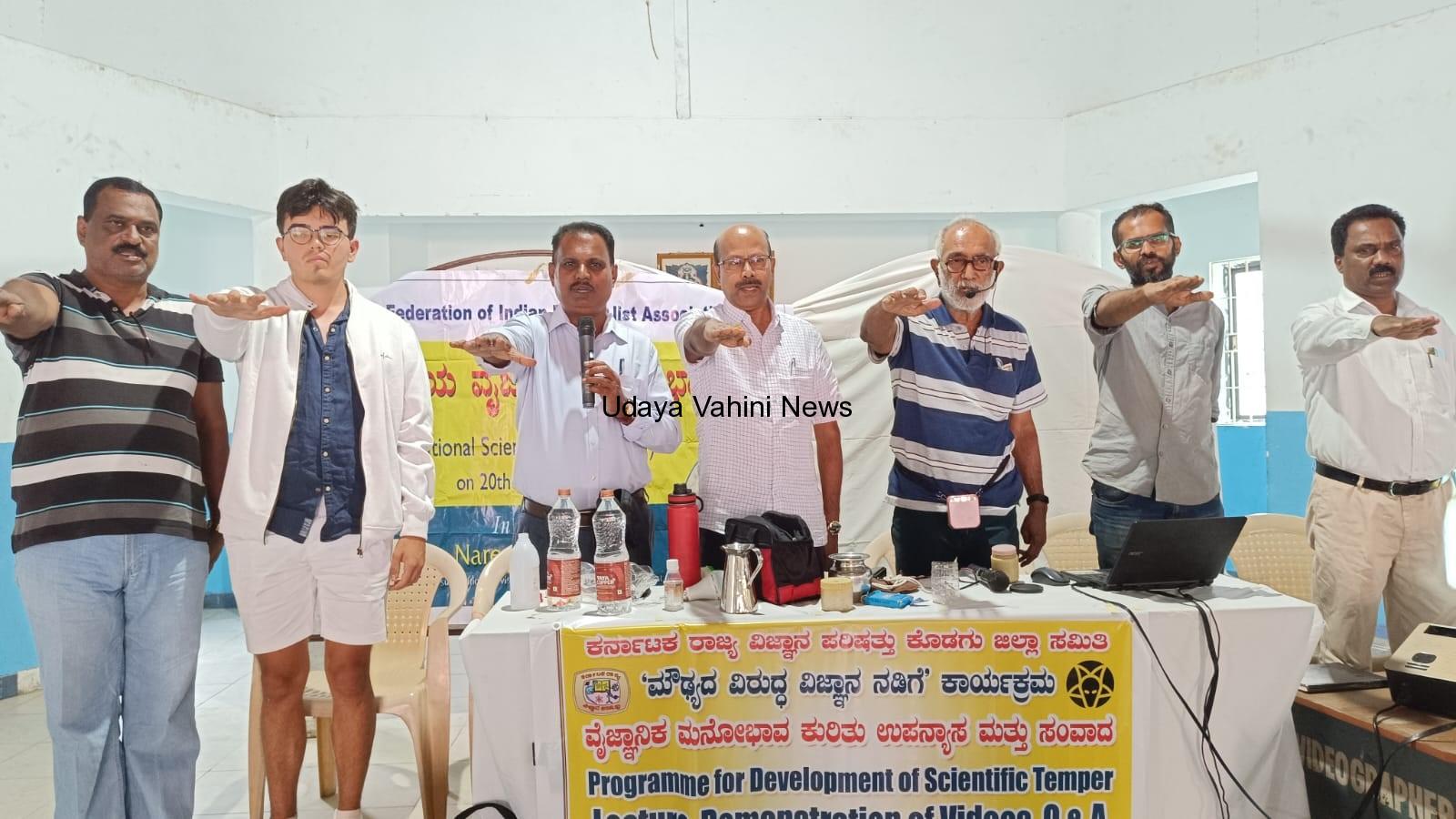 ಶೂನ್ಯದಿಂದ ಬೂದಿ ಸೃಷ್ಠಿಸುವುದು, ಬರಿಗೈಯಿಂದ ಚಿನ್ನದ ಉಂಗುರ ಮತ್ತು ಹೊಸ ನೋಟು ಸೃಷ್ಠಿಸುವುದು ಮತ್ತಿತರ ಪ್ರಾತ್ಯಕ್ಷಿಕೆಗಳ ಮೂಲಕ ವಿವಿಧ ಪವಾಡವನ್ನು ಬಿಡಿಸಿ ಅದರ ಹಿಂದಿರುವ ರಹಸ್ಯ ಬಯಲಿಗೆಳೆಯುವ ಕಾರ್ಯ ಮಾಡಿದರು. ಅಧ್ಯಕ್ಷತೆ ವಹಿಸಿದ್ದಕರ್ನಾಟಕ ರಾಜ್ಯ ವಿಜ್ಞಾನ ಪರಿಷತ್ತು ಕೊಡಗು ಜಿಲ್ಲಾ ಸಮಿತಿಯ ಅಧ್ಯಕ್ಷ ಟಿ.ಜಿ.ಪ್ರೇಮಕುಮಾರ್ ವೈಜ್ಞಾನಿಕ ಪ್ರತಿಜ್ಞಾ ವಿಧಿ ಬೋಧಿಸಿ ಮಾತನಾಡಿ, ವಿಜ್ಞಾನ ಪರಿಷತ್ತು ವತಿಯಿಂದ ಇಂತಹ ವೈಜ್ಞಾನಿಕ ಪ್ರಜ್ಞೆ ಬೆಳೆಸುವ ವೈವಿಧ್ಯ ಕಾರ್ಯಕ್ರಮ ಎಂದರು.ಕಾರ್ಯಕ್ರಮ ಉದ್ಘಾಟಿಸಿ ಮಾತನಾಡಿದ ಜಿಲ್ಲಾ ಹೋಟೆಲ್ ಮತ್ತು ರೆಸಾರ್ಟ್ ಮಾಲೀಕರ ಸಂಘದ ಅಧ್ಯಕ್ಷ ಬಿ.ಎನ್.ನಾಗೇಂದ್ರಪ್ರಸಾದ್ ಮಾತನಾಡಿದರು.ಜಿಲ್ಲಾ ವಿಜ್ಞಾನ ಪರಿಷತ್ ಸಮಿತಿಯ ನಿರ್ದೇಶಕ ಎಂ.ಎನ್.ವೆಂಕಟನಾಯಕ್ , ಪವಾಡಗಳ ಹಿಂದಿರುವ ವೈಜ್ಞಾನಿಕ ಕಾರಣಗಳ ಕುರಿತು ವಿವರಿಸಿದರು.