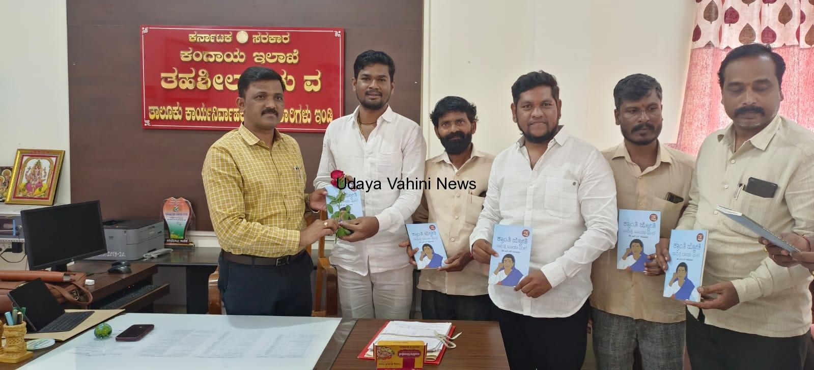 ಈ ಸರಕಾರದ ಆದೇಶದಂತೆ ಇಂಡಿ ತಾಲೂಕಿಗೆ ಹೊಸದಾಗಿ ಅಧಿಕಾರ ಸ್ವೀಕರಿಸಿದ ತಹಶೀಲ್ದಾರ್ ವಿಜಯ್ ಕುಮಾರ್ ಅವರನ್ನು ದಲಿತ ಮುಖಂಡರು ಹಾಗು ಕಾಂಗ್ರೆಸ್ ಪಕ್ಷದ ಯುವ ನಾಯಕರು ಆದ ಶಿವಾನಂದ ಮುರಮಾನ ಅವರು ನೋಟು ಬುಕ್ ಕೊಟ್ಟು ತಹಶೀಲ್ದಾರ್ ಅವರನ್ನು ಗೌರವಿಸಿದರು ಈ ಸಂದರ್ಭದಲ್ಲಿ ವಿಜಯಕುಮಾರ್ ಮುರಮಾನ ಆನಂದ್ ಪವರ್ ರಮೇಶ್ ಧರೆನವರ್ ಮಂಜು ನಿರಂಜನ್. ರಾಹುಲ್ ಸರ್ಕಲ್ ಕಲಾಟಿ ಪಾಲ್ಗೊಂಡಿದ್ದರು.