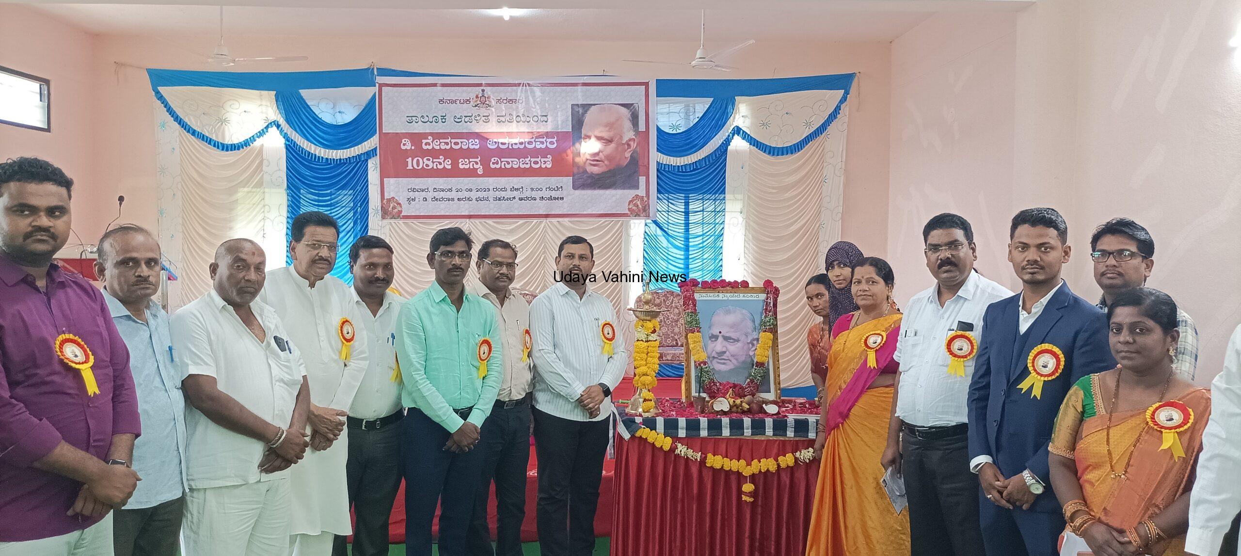 ಕಾರ್ಯಕ್ರಮವನ್ನು ತಹಸೀಲ್ದಾರ್ ಸುಬ್ಬಣ್ಣ ಜಮಖಂಡಿ ಉದ್ಘಾಟಿಸಿ ಮಾತನಾಡಿದ ಅವರು, ಡಿ.ದೇವರಾಜ ಅರಸುರವರು ಹಿಂದುಳಿದ ವರ್ಗಗಳ ಪರ ದಲಿತರ ಪರ ಅಲ್ಪಸಂಖ್ಯಾತರ ಬಗ್ಗೆ ಅತಿಹೆಚ್ಚು ಕೆಲಸ ಮಾಡಿದ ಕೀರ್ತಿ ಅರಸುರವರಿಗೆ ಸಲ್ಲುತ್ತದೆ. ಭೂಸುಧಾಹರಣೆ ಕಾಯ್ದೆ ಜಾರಿಗೆ,ಬಾಲ ಕಾರ್ಮಿಕರ ನಿರ್ಮೂಲನೆ,ಜೀತಪದ್ದತಿ ಜಾರಿಗೆ,ಮಕ್ಕಳಿಗೆ ವಿಧ್ಯಾಭ್ಯಾಸ ಕುಂಠಿತವಾಗದೆ ವಸತಿನಿಲಯಗಳ ಪ್ರಾರಂಭ ಮಾಡಿ ಪಿಂಚಣಿ ವ್ಯವಸ್ಥೆ ಪ್ರಾರಂಭಿಸಿದರು,ಎಸ್ಸಿ ಎಸ್ಟಿ,ಓಬಿಸಿ ಜನಾಂಗಕ್ಕೆ ಮುಂಬಡ್ತಿಗಾಗಿ ದುಡಿದ ನಾಯಕರಾಗಿದ್ದರು ಎಂದರು.ವಸತಿನಿಲಯದ ಮೇಲ್ಚಾರಕಿ ರೇಣುಕಾ ಸ್ವಾಗತಿಸಿದರು,ಜೂನಿಯರ್ ಕಾಲೇಜು ಪ್ರಾಚಾರ್ಯರು ಮಲ್ಲಿಕಾರ್ಜುನ ಪಾಲಾಮೋರ್ ನಿರೂಪಿಸಿದರು,ಮುಖ್ಯಾಧಿಕಾರಿ ಕಾಶಿನಾಥ ಧನ್ನಿ ವಂದಿಸಿದರು.ಈ ಸಂದರ್ಭದಲ್ಲಿ ಗ್ರೇಡ್2 ತಹಸೀಲ್ದಾರ್ ವೆಂಕಟೇಶ ದುಗ್ಗನ್,ಬಿಸಿಎಂ ಕಲ್ಯಾಣಾಧಿಕಾರಿ ಅನುಸೋಯಾ ಚವ್ಹಾಣ,ನಾಗೇಂದ್ರಪ್ಪಾ,ಗಿರಿರಾಜ ಸಜ್ಜನ,ಕೆಎಂ ಬಾರಿ,ಲಕ್ಷ್ಮಣ ಆವುಂಟಿ,ಹಣಮಂತ ಪೂಜಾರಿ,ಅಮರ ಲೋಡನೂರ್,ಉಮೇಶ ಹಳಿಮನಿ,ಸಾಗರ ನಿಂಬಾಳಕರ,ಬಸವರಾಜ ಬಳಿಚಕ್ರ,ರಾಜಕುಮಾರ ಚಿಟ್ಟಾ,ಪ್ರೀಯಾದರ್ಶೀನಿ,ಹೀನಾ,ಸರಸ್ ವತಿ,ಕವಿತಾ,ದೀಪಾ,ವಿಜಯಲಕ್ಷ್ಮಿ,ಅಡು ಗೆ ಸಹಾಯಕರು,ಸಿಬ್ಬಂದಿ ವರ್ಗದವರು ಅನೇಕರಿದ್ದರು.