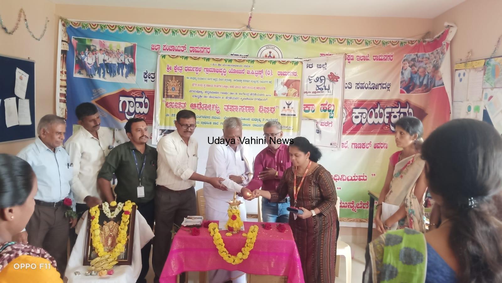 ಉದಯವಾಹಿನಿ ರಾಮನಗರ: ಶ್ರೀ ಕ್ಷೇತ್ರ ಧರ್ಮಸ್ಥಳ ಗ್ರಾಮಭಿವೃದ್ಧಿ ಯೋಜನೆ ಬಿ ಸಿ ಟ್ರಸ್ಟ್ ರಾಮನಗರ ತಾಲ್ಲೂಕು ಹಾಗೂ ಡಾ ಚಂದ್ರಮ್ಮ ದಯಾನಂದ ಸಾಗರ್ ಆಸ್ಪತ್ರೆ ಹಾರೋಹಳ್ಳಿ ಇವರ ಸಹಯೋಗದಲ್ಲಿ ಉಚಿತ ಆರೋಗ್ಯ ತಪಾಸಣಾ ಕಾರ್ಯಕ್ರಮವು ಬಿಡದಿ ವಲಯದ ಗಾಣಕಲ್ ಗ್ರಾಮದ ಸರಕಾರಿ ಹಿರಿಯಪ್ರಾಥಮಿಕ ಶಾಲೆ ಆವರಣದಲ್ಲಿ ಮಂಗಳವಾರ ನಡೆಯಿತು.ಕಾರ್ಯಕ್ರಮವನ್ನು ಜಿಲ್ಲಾ ಜನ ಜಾಗೃತಿ ವೇದಿಕೆ ನಿಕಟ ಪೂರ್ವ ಅಧ್ಯಕ್ಷ ಚಿಕ್ಕಣ್ಣಯ್ಯ ಅವರು ಉದ್ಘಾಟನೆ ಮಾಡಿದರು. ಮುಖ್ಯ ಅತಿಥಿಗಳಾಗಿ ಆಗಮಿಸಿದ್ದ ತಾಲೂಕು ಯೋಜನಾಧಿಕಾರಿ ಮುರಳೀಧರ ಮಾತನಾಡಿ, ಈ ವರ್ಷ ಸಂಘದ ಸದಸ್ಯರಿಗೆ ಆರೋಗ್ಯ ಬಗ್ಗೆ ಕಾಳಜಿ ವಹಿಸುವ ಸಲುವಾಗಿ ತಾಲೂಕಿನಲ್ಲಿ 10 ಉಚಿತ ವೈದ್ಯಕೀಯ ಶಿಬಿರ ಹಮ್ಮಿಕೊಳ್ಳಲಾಗಿದೆ . ಇದರ ಪ್ರಯೋಜನವನ್ನು ಸಂಘದ ಸದಸ್ಯರು ಪಡೆದುಕೊಳ್ಳಬೇಕು ಎಂದು ತಿಳಿಸಿದರು. ಇದರ ಜೊತೆಗೆ ಸಂಘದ ಸದಸ್ಯರಿಗೆ ಆರೋಗ್ಯ ರಕ್ಷಾ, ಸಂಪೂರ್ಣ ಸುರಕ್ಷಾ ಯೋಜನೆಯನ್ನು ನೋಂದಾವಣೆ ಮಾಡಿದ್ದೂ ಇದರಡಿಯಲ್ಲಿ ಒಬ್ಬ ಸದಸ್ಯರಿಗೆ 20 ಸಾವಿರ ರೂಗಳಂತೆ ಒಂದು ಕುಟುಂಬಕ್ಕೆ 1.2 ಲಕ್ಷ ಸೌಲಭ್ಯವಿದೆ. ಜನಮಂಗಳ ಉಪಕರಣ ಕಾರ್ಯಕ್ರಮದಡಿಯಲ್ಲಿ ಅಂಗವಿಕಲರಿಗೆ ಉಚಿತವಾಗಿ ಉಪಕರಣ ವಿತರಣೆ ಮಾಡಲಾಗುತ್ತಿದೆ ಎಂದು ತಿಳಿಸಿದರು. ದಯಾನಂದ ಸಾಗರ ಆಸ್ಪತ್ರೆಯ ಮುಖ್ಯ ವೈದ್ಯರಾದ ಡಾ.ಕೃಷ್ಣರೆಡ್ಡಿ, ಡಾ.ಜಾಕಿರ್ ಹುಸೇನ್, ಶಾಲಾ ಮುಖ್ಯ ಶಿಕ್ಷಕ ಕೃಷ್ಣಯ್ಯ, ಒಕ್ಕೂಟ ಅಧ್ಯಕ್ಷರಾದ ರಾಜು, ಪ್ರೌಢ ಶಾಲಾ ಶಿಕ್ಷಕ ಹೊನ್ನೇಗೌಡ , ವಲಯ ಮೇಲ್ವಿಚಾರಕಿ ಅರ್ಚನಾ, ತಾಲೂಕು ನೋಡಲ್ ಅಧಿಕಾರಿ ದಿನೇಶ್ ಸೇರಿದಂತೆ ವಲಯದ ಸೇವಾ ಪ್ರತಿನಿಧಿಗಳು ಭಾಗವಹಿಸಿದ್ದರು. ಶಿಬಿರದಲ್ಲಿ ಸಾಮಾನ್ಯ ಕಾಯಿಲೆಗಳು, ಕಣ್ಣಿನ ತಪಾಸಣೆ, ಸ್ತ್ರೀ ರೋಗ ತಪಾಸಣೆ, ಕೀಲು ಮತ್ತು ಮೂಳೆ ರೋಗ ತಪಾಸಣೆಯನ್ನು ಮಾಡಲಾಯಿತು. ಒಟ್ಟು 330 ಮಂದಿ ಸದಸ್ಯರು ಪ್ರಯೋಜನವನ್ನು ಪಡೆದುಕೊಂಡರು.