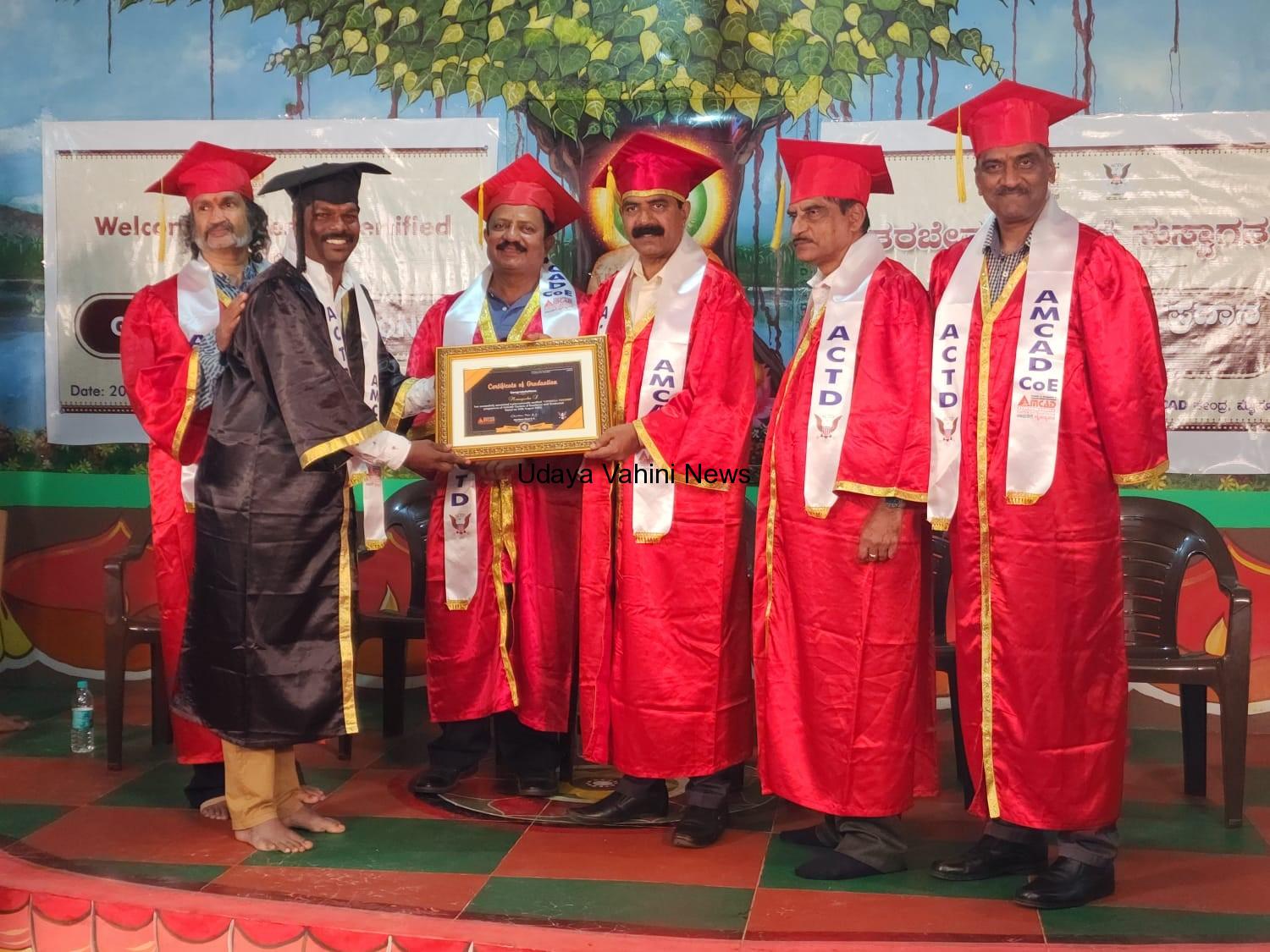 ಉದಯವಾಹಿನಿ ಕುಶಾಲನಗರ ;- ಎ.ಎಂ.ಸಿ.ಎ.ಡಿ. ಸೆಂಟರ್ ಅಫ್ ಎಕ್ಸ್ ಲೆನ್ಸ್ ನ ಅಂತರರಾಷ್ಟೀಯ ಪ್ರಮಾಣಿಕೃತ “ಲೈಪ್ ಸ್ಕೀಲ್ ಟ್ರೆöÊನರ್” ಕಾರ್ಯಕ್ರಮವನ್ನು ಯಶಶ್ವಿಯಾಗಿ ಪೂರೈಸಿದ್ದಕ್ಕಾಗಿ ಸುಂಟಿಕೊಪ್ಪದ ಸಮಾಜ ಸೇವಕ ಸ್ವಸ್ಥ ಸಂಸ್ಥೆಯ ಸಿ.ಬಿ.ಅರ್. ಸಂಯೋಜಕ ಮುರುಗೇಶ “ಲೈಪ್ ಸ್ಕೀಲ್ ಟ್ರೆನರ್” ಪ್ರಶಸ್ತಿಗೆ ಭಾಜನರಾಗಿದ್ದಾರೆ.ಮೈಸೂರಿನ ಎ.ಎಂ.ಸಿ.ಎ.ಡಿ. ಸಂಸ್ಥೆಯಲ್ಲಿ ನಡೆದ ಪದವಿ ಪ್ರಮಾಣದ ಘುಟೀಕೊತ್ಸವದಲ್ಲಿ ನಡೆದ ಸಮಾರಂಭದಲ್ಲಿ ಮಾನ್ಯತೆ ಸಂಖ್ಯೆ ಜಿ.ಎನ್.ಎ.೦೯೮ಎನ್ ಎ.ಎ.ಟಿ.೦೧೧೧ ಯಡಿಯಲ್ಲಿ ಉತ್ತಮ ಜೀವನ ತರಬೇತಿ ಕೌಶಲ್ಯದ ತರಬೇತಿದಾರ ಎಂದು ಗೌರವಿಸಿ ಪದವಿಯನ್ನು ನೀಡಲಾಯಿತ್ತು.