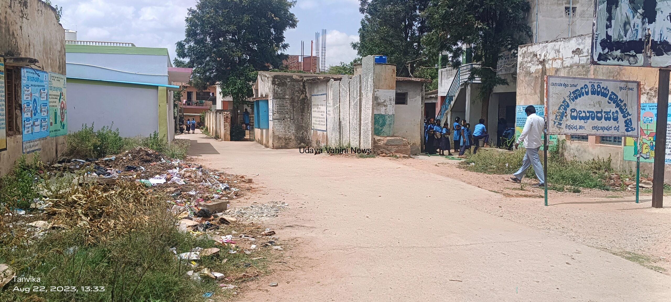 ಉದಯವಾಹಿನಿ, ಶಿಡ್ಲಘಟ್ಟ: ದಿಬ್ಬೂರಹಳ್ಳಿ ಗ್ರಾಮ ಪಂಚಾಯಿತಿ ಮುಂಭಾಗದಲ್ಲಿರುವ ಸರ್ಕಾರಿಶಾಲೆಯ ಪಕ್ಕದಲ್ಲಿ ರಾಶಿ ರಾಶಿ ಕಸ ಇರುವುದು ಹೇಳತೀರವಾಗಿದೆ. ಇನ್ನು ಕಸದ ರಾಶಿ ಗಬ್ಬೆದ್ದು ನಾರುತ್ತಿದೆ ಇದರಿಂದ ಮಕ್ಕಳ ಆರೋಗ್ಯದ ಮೇಲೆ ದುಷ್ಪರಿಣಾಮ ಬೀರುವ ಆತಂಕ ಸಾರ್ವಜನಿಕರಿಂದ ವ್ಯಕ್ತವಾಗಿದೆ.ತಾಲೂಕಿನ ದಿಬ್ಬೂರಹಳ್ಳಿ ಗ್ರಾಮ ಪಂಚಾಯಿತಿ ವ್ಯಾಪ್ತಿಯಲ್ಲಿ ಕಂಡು ಬಂದಿರುವ ದೃಶ್ಯವಾಗಿದೆ. ದಿಬ್ಬೂರಹಳ್ಳಿ ಗ್ರಾಮ ಪಂಚಾಯತಿಯಲ್ಲಿ ಈ ಹಿಂದೆ 3-4 ಬಾರಿ ತಾಲೂಕು ಆಡಳಿತ ವತಿಯಿಂದ ಸ್ವಚ್ಛತಾ ಅಭಿಯಾನವನ್ನು ಹಮ್ಮಿಕೊಂಡಿದ್ದು, ಕೇವಲ ಮುಖ್ಯರಸ್ತೆಗಳಲ್ಲಿ ಹೆಸರಿಗೆ ಮಾತ್ರ ಸ್ವಚ್ಛತಾ ಕಾರ್ಯವನ್ನು ಮಾಡುತ್ತಾರೆ.ಶಾಲೆ, ಅಂಗನವಾಡಿ ಹಾಗೂ ಅಂಗಡಿಗಳ ಮುಂದೆ ಇರುವಂತ ಕಸವನ್ನು ಅಭಿವೃದ್ಧಿ ಅಧಿಕಾರಿಗಳು ನೋಡಿ ನೋಡದಂತೆ ಹೋಗುತ್ತಾರೆ. ಪಿಡಿಒ ಅವರು ಕಾರು ನಿಲ್ಲಿಸುವ ಮುಂಭಾಗದಲ್ಲಿ ರಾಶಿ ರಾಶಿ ಕಸ ಇದ್ದರು ನೋಡದಂತೆ ಹೋಗುತ್ತಾರೆ. ಒಂದು ಕಡೆ ಸರ್ಕಾರಿ ಅಂಗನವಾಡಿ ಶಾಲೆಯಾದರೆ ಮತ್ತೊಂದು ಕಡೆ ಸರ್ಕಾರಿ ಕಿರಿಯ ಪ್ರಾಥಮಿಕ ಶಾಲೆಯ ಮಕ್ಕಳು ಓಡಾಡುತ್ತಿರುತ್ತಾರೆ. ಈ ಕಸದ ರಾಶಿಯಿಂದ ರೋಗ-ರುಜೀನಗಳು ಹೆಚ್ಚಾಗಿ ಖಾಯಿಲೆಗಳಿಗೆ ತುತ್ತಾಗುತ್ತಾರೆ ಎಂಬ ಭಯದಲ್ಲಿ ಪೋಷಕರು ಮಕ್ಕಳನ್ನು ಶಾಲೆಗೆ ಕಳುಹಿಸುತ್ತಾರೆ.