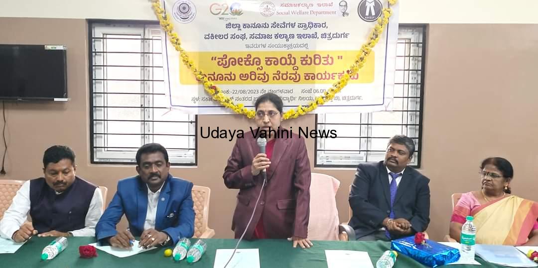 ಉದಯವಾಹಿನಿ, ಚಿತ್ರದುರ್ಗ: ವಿದ್ಯಾರ್ಥಿಗಳು ಉತ್ತಮವಾದ ಶಿಕ್ಷಣ ಪಡೆದು ತಂದೆ-ತಾಯಿಗಳಿಗೆ ಒಳ್ಳೆಯ ಮಕ್ಕಳಾಗಿ ಹಾಗೂ ಸಮಾಜಕ್ಕೆ ಒಳ್ಳೆಯ ಪ್ರಜೆಯಾಗಿ ಬದುಕಬೇಕು ಎಂದು 2ನೇ ಅಪರ ಜಿಲ್ಲಾ ಮತ್ತು ಸತ್ರ ನ್ಯಾಯಾಧೀಶರು ಹಾಗೂ ಪೋಕ್ಸೋ ವಿಶೇಷ ನ್ಯಾಯಾಲಯದ ನ್ಯಾಯಾಧೀಶರಾದ ಬಿ.ಕೆ. ಕೋಮಲ ಅವರು ವಿದ್ಯಾರ್ಥಿಗಳಿಗೆ ಹೇಳಿದರು. ಜಿಲ್ಲಾ ಕಾನೂನು ಸೇವೆಗಳ ಪ್ರಾಧಿಕಾರ, ವಕೀಲರ ಸಂಘ, ಸಮಾಜ ಕಲ್ಯಾಣ ಇಲಾಖೆ ವತಿಯಿಂದ ಮಂಗಳವಾರ ನಗರದ ಸರ್ಕಾರಿ ಮೆಟ್ರಿಕ್ ನಂತರದ ಬಾಲಕಿಯರ ವಿದ್ಯಾರ್ಥಿ ನಿಲಯದಲ್ಲಿ ಆಯೋಜಿಸಿದ್ದ “ಪೋಕ್ಸೋ ಕಾಯ್ದೆ ಕುರಿತು” ಕಾನೂನು ಅರಿವು ನೆರವು ಕಾರ್ಯಕ್ರಮವನ್ನು ಉದ್ಘಾಟಿಸಿ ಅವರು ಮಾತನಾಡಿದರು.