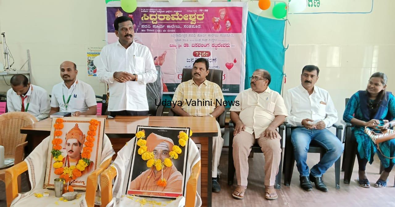 ಉದಯವಾಹಿನಿ, ಔರಾದ್ : ರಕ್ತದಾನ ಮಾಡುವುದರಿಂದ ಮಾನವನ ಜೀವನ ಉಳಿವಿಗೆ ಸಹಾಯಕವಾಗುವುದರಿಂದ ರಕ್ತದಾನ ಮಹಾದಾನವಾಗಿದೆ ಎಂದು ಕರ್ನಾಟಕ ರಾಜ್ಯ ಮಕ್ಕಳ ಹಕ್ಕುಗಳ ರಕ್ಷಣಾ ಆಯೋಗ ಸದಸ್ಯರಾದ ಶಶಿಧರ ಕೋಸಂಬೆ ಹೇಳಿದರು. ತಾಲ್ಲೂಕಿನ ಸಂತಪುರ್ ಸಿದ್ದರಾಮೇಶ್ವರ ಪದವಿ ಪೂರ್ವ ಕಾಲೇಜು ವತಿಯಿಂದ ಭಾಲ್ಕಿ ಹಿರೇಮಠದ ಪೂಜ್ಯಶ್ರೀಗಳಾದ ಡಾ. ಬಸವಲಿಂಗ ಪಟ್ಟದೇವರ 73ನೇ ಜನ್ಮದಿನ ಪ್ರಯುಕ್ತ ಬುಧವಾರ ಸಂತಪೂರ ಸಮುದಾಯ ಆರೋಗ್ಯ ಕೇಂದ್ರದಲ್ಲಿ ನಡೆದ ರಕ್ತದಾನ ಶಿಬಿರ ಕಾರ್ಯಕ್ರಮ ಉದ್ಘಾಟಿಸಿ ಮಾತನಾಡಿದ ಅವರು ಡಾ. ಬಸವಲಿಂಗ ಪಟ್ಟದೇವರು ಶೈಕ್ಷಣಿಕ, ಧಾರ್ಮಿಕ ಮತ್ತು ಸಾಮಾಜಿಕ ಸಮಾಜೋದ್ಧಾರ ಕಾರ್ಯ ಮಾಡುವುದರಿಂದ ಅವರ ಜನ್ಮದಿನದಂದು ರಕ್ತದಾನ ಶಿಬಿರ ಏರ್ಪಡಿಸಿ ರಕ್ತದಾನ ಮಾಡುವುದು ಪವಿತ್ರ ಕಾರ್ಯವಾಗಿದೆ ಎಂದರು.ತಾಲೂಕಾ ಜಾನಪದ ಸಾಹಿತ್ಯ ಪರಿಷತ್ತ ಅದ್ಯಕ್ಷ ಡಾ ಸಂಜುಕುಮಾರ ಜುಮ್ಮಾ ಮಾತನಾಡಿ, ಪೂಜ್ಯಶ್ರೀ ಡಾ ಬಸವಲಿಂಗ ಪಟ್ಟದೇವರು ಪೂಜ್ಯಶ್ರೀ ಡಾ. ಚನ್ನಬಸವ ಪಟ್ಟದೇವರ ಆಶೀರ್ವಾದ ಮಾರ್ಗದಲ್ಲಿ ಸಮಾಜ ಸುಧಾರಣೆ ಕಾರ್ಯ ಮಾಡುತ್ತಿರುವದರಿಂದ ಪೂಜ್ಯಶ್ರೀಗಳು ಶತಮಾನೋತ್ಸವ ಆಚರಿಸಿಕೊಳ್ಳಲಿ ಎಂದು ಶುಭ ಹಾರೈಸಿದರು.ಪ್ರಾಂಶುಪಾಲ ನವೀಲಕುಮಾರ ಉತ್ಕಾರ್ ಮಾತನಾಡಿದರು. ಸಿಡಿಪಿಓ ಭೀಮಸೇನ ಚೌಹಾಣ್, ಪಿಎಸ್ಐ ಮೆಹಬೂಬ ಅಲಿ, ಪೊಲೀಸ್ ಸಿಬ್ಬಂದಿ ಸೂರ್ಯಕಾಂತ ದೇಶಮುಖ, ವೈದ್ಯಾಧಿಕಾರಿಗಳಾದ ಅಬ್ದುಲ್ ವಾಜಿದ್, ಡಾ. ಸಂಗಮೇಶ್ ಬಿರಾದರ್, ಬೀದರ್ ರಕ್ತಕೇಂದ್ರದ ವೈದ್ಯಾಧಿಕಾರಿ ಶ್ರುತಿ, ಸಂತಪುರ್ ಆಸ್ಪತ್ರೆಯ ಸಿಬ್ಬಂದಿಗಳಾದ ಕಿರಣಕುಮಾರ್ ಬಿರಾದರ್, ಗುರು ಅಂಕಲಗಿ, ಲ್ಯಾಬ್ ಅನಿಲಕುಮಾರ್, ಸುಭಾಷ ಲಾಧಾ,ತುಕಾರಾಂ ಹಸನ್ನುಮುಖಿ, ಉಪನ್ಯಾಸಕರಾದ ಕಲ್ಲಪ್ಪ ಬುಟ್ಟೆ, ಸಿದ್ದಾರೂಢ ಪಾಂಚಾಳ, ಶಿವಪುತ್ರ ಧರಣೆ, ರಮೇಶ್, ಗುರುಪ್ರಸಾದ್, ಸಂತೋಷ್ ಮಡಿವಾಳ ಇದ್ದರು.