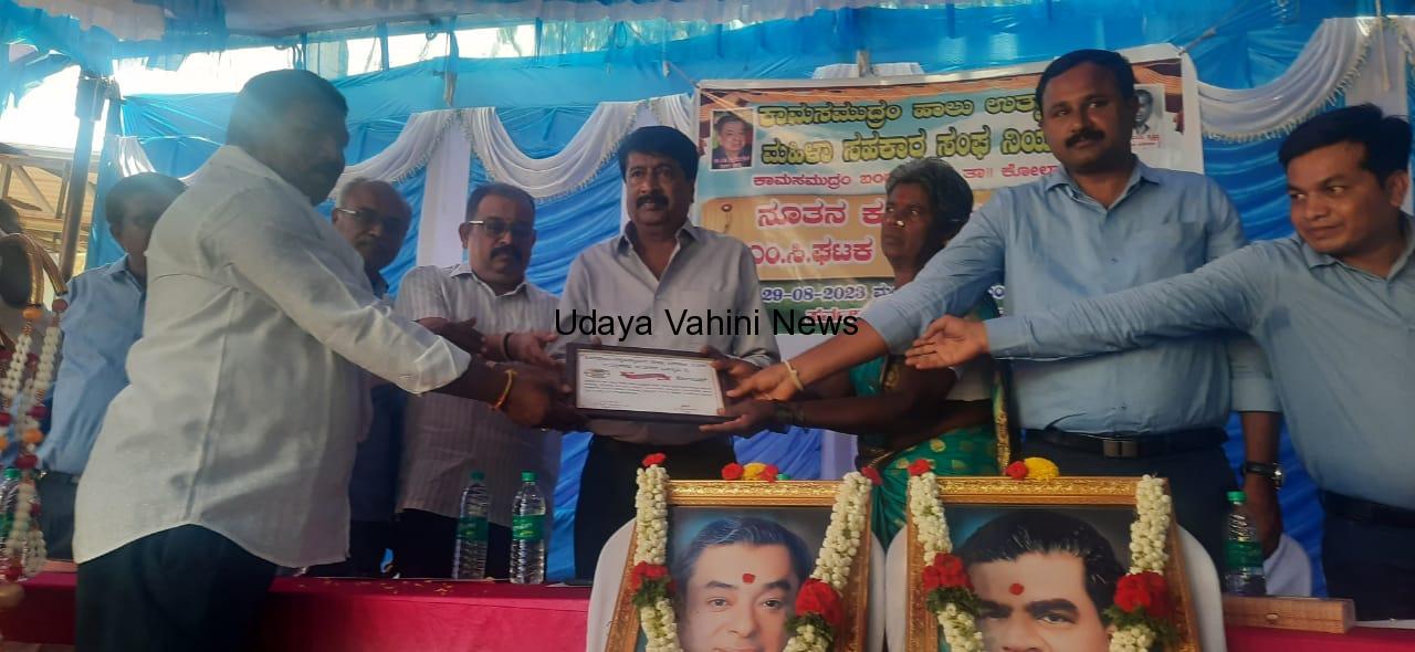 ಉದಯವಾಹಿನಿ,ಬಂಗಾರಪೇಟೆ: ತಾಲ್ಲೂಕಿನ ಕಾಮಸಮುದ್ರ ಗ್ರಾಮದಲ್ಲಿ “ಹಾಲು ಉತ್ಪಾದಕರ ಮಹಿಳಾ ಸಹಕಾರಿ ಸಂಘ ನಿಯಮಿತ” ವತಿಯಿಂದ ನೂತನ ಕಟ್ಟಡ ಹಾಗೂ 3000 ಲೀಟರ್ ಬಿ.ಎಂ.ಸಿ. ಉದ್ಘಾಟಿಸಿ ಮಾತನಾಡಿದ ಅವರು,ಇಡಿ ವಿಶ್ವದಲ್ಲಿ ಅತಿ ಹೆಚ್ಚು ಹಾಲು ಉತ್ಪಾದನೆ ಮಾಡುವ ಏಕೈಕ ರಾಷ್ಟ್ರ ಭಾರತವಾಗಿದೆ, ದೇಶವನ್ನು ಕಾಯುವ ಯೋಧರಿಗೆ ನಮ್ಮ ಜಿಲ್ಲೆಯ ಹಾಲು ರಫ್ತು ಮಾಡುತ್ತಿರುವುದು ಹೆಮ್ಮೆ ಪಡುವಂತಹ ವಿಚಾರ, ಮತ್ತು ಕಲಿಯುಗದ ಆರಾಧ್ಯ ದೈವ ತಿರುಪತಿ ತಿಮ್ಮಪ್ಪನಿಗೆ ನಮ್ಮ ಜಿಲ್ಲೆಯ ಹಾಲು ಸಮರ್ಪಣೆಯಾಗುತ್ತಿದೆ, ಇಷ್ಟೆಲ್ಲಾ ಅದ್ಭುತ ಕೆಲಸಗಳಿಗೆ ಕಾರಣಕರ್ತರಾದ ರೈತ ಸಮುದಾಯಕ್ಕೆ ಅಭಿನಂದನೆಗಳು ಎಂದು ತಿಳಿಸಿದರು. ಹಾಲು ಉತ್ಪಾದಕರ ಸಂಘ ರೈತರಿಗಾಗಿ ರೈತರೆ ಸೃಷ್ಟಿಸಿರುವಂತ ಪಕ್ಷ ರಹಿತವಾಗಿ ರಾಜಕೀಯೇತರವಾಗಿ ಸ್ಥಾಪಿತವಾದ ಸಂಸ್ಥೆಯಾಗಿದೆ. ಹಾಲು ಉತ್ಪಾದಕ ಸಹಕಾರ ಸಂಘದ ಸದಸ್ಯರು ರಾಜಕಾರಣವನ್ನು ಬದಿಗೆಟ್ಟು ಕೃಷಿಕರ ಅಭಿವೃದ್ಧಿಗಾಗಿ ಹೈನುಗಾರಿಕೆಯನ್ನು ಉತ್ತೇಜಿಸಲು ಶ್ರಮವಹಿಸಬೇಕು.