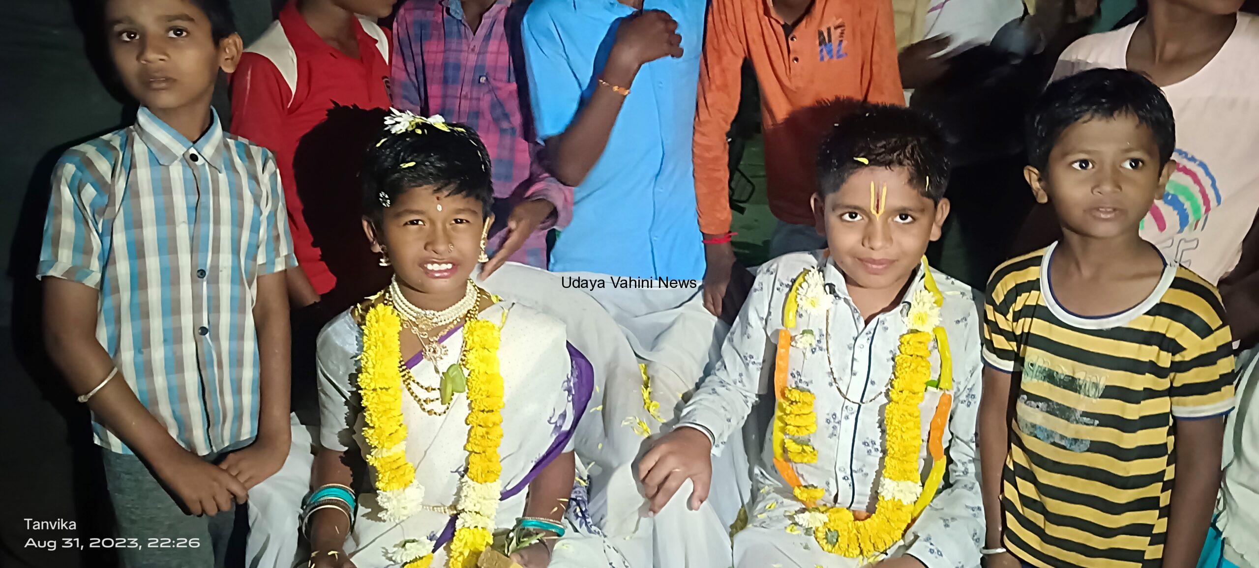 ಉದಯವಾಹಿನಿ,ಶಿಡ್ಲಘಟ್ಟ: ಮಳೆಗಾಗಿ ಗಂಡು ಮಗುವಿಗೆ ಹೆಣ್ಣಿನ ವೇಷ ಹಾಕಿಸಿ ಮಕ್ಕಳ ಅಣಕು ಮದುವೆ ಮಾಡಿಸಿರೋ ಘಟನೆ ಶಿಡ್ಲಘಟ್ಟ ತಾಲೂಕಿನ ಚಿಕ್ಕತೇಕಹಳ್ಳಿ ಗ್ರಾಮದಲ್ಲಿ ನಡೆದಿದೆ.